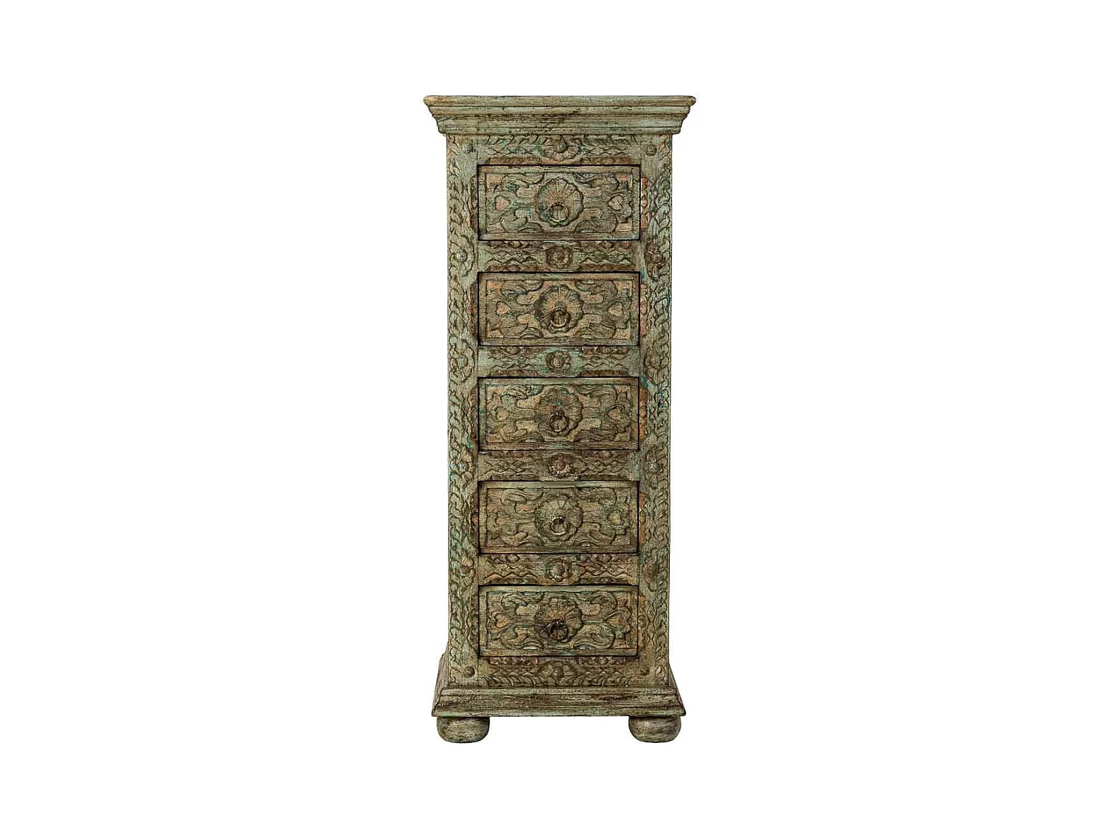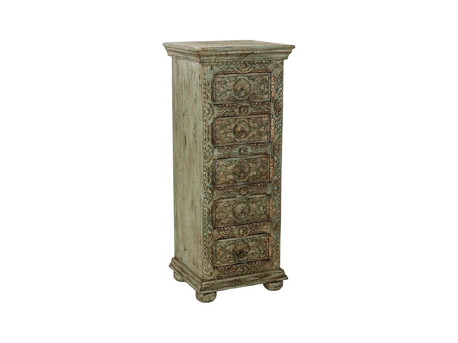 Cómoda em madeira azul com 5 gavetas 50x35x110h cm
