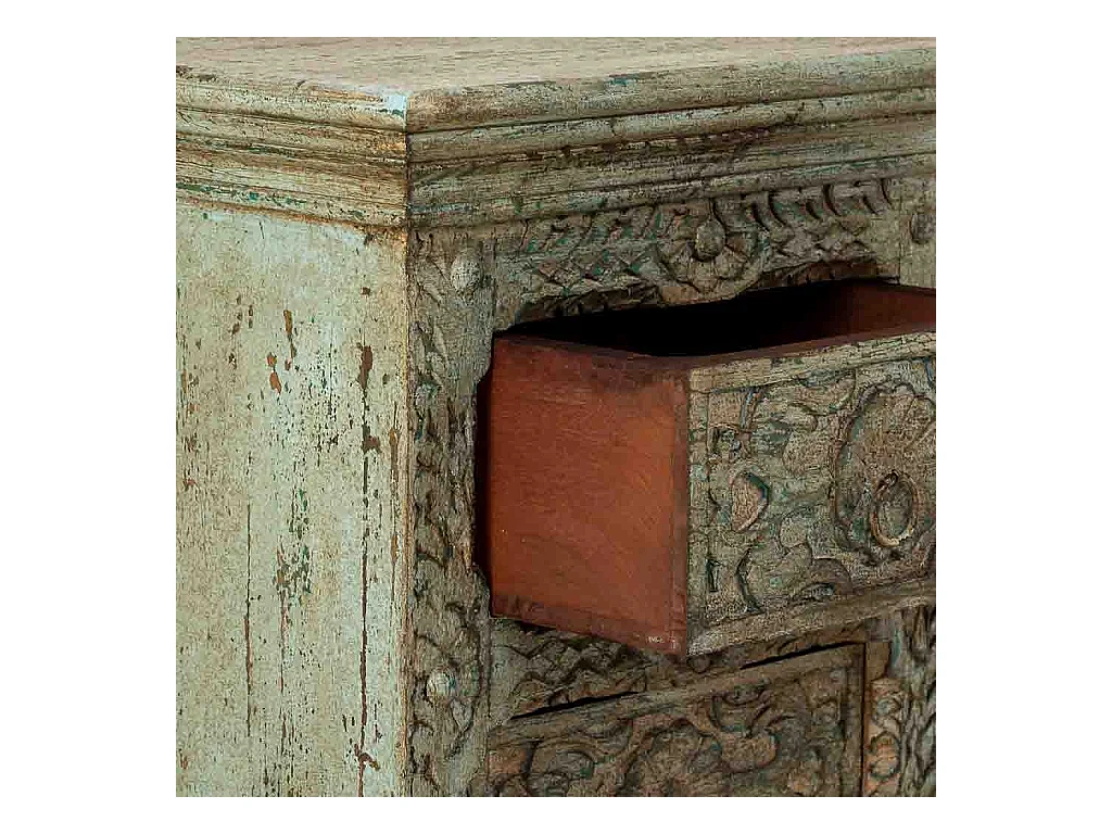 Cómoda em madeira artesanal com 5 gavetas azul, 45x40x100cm