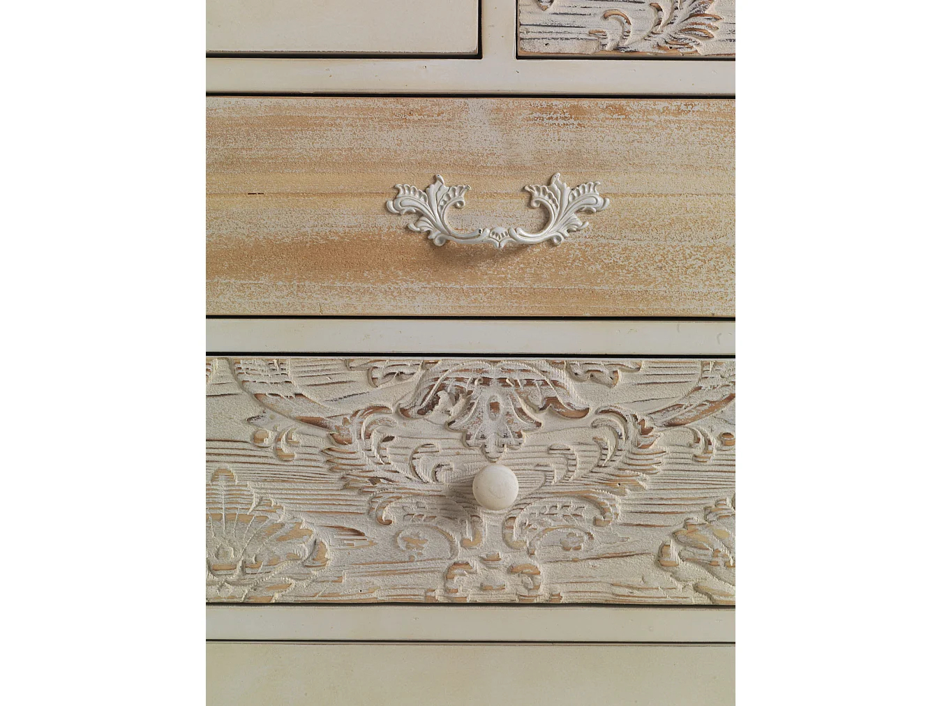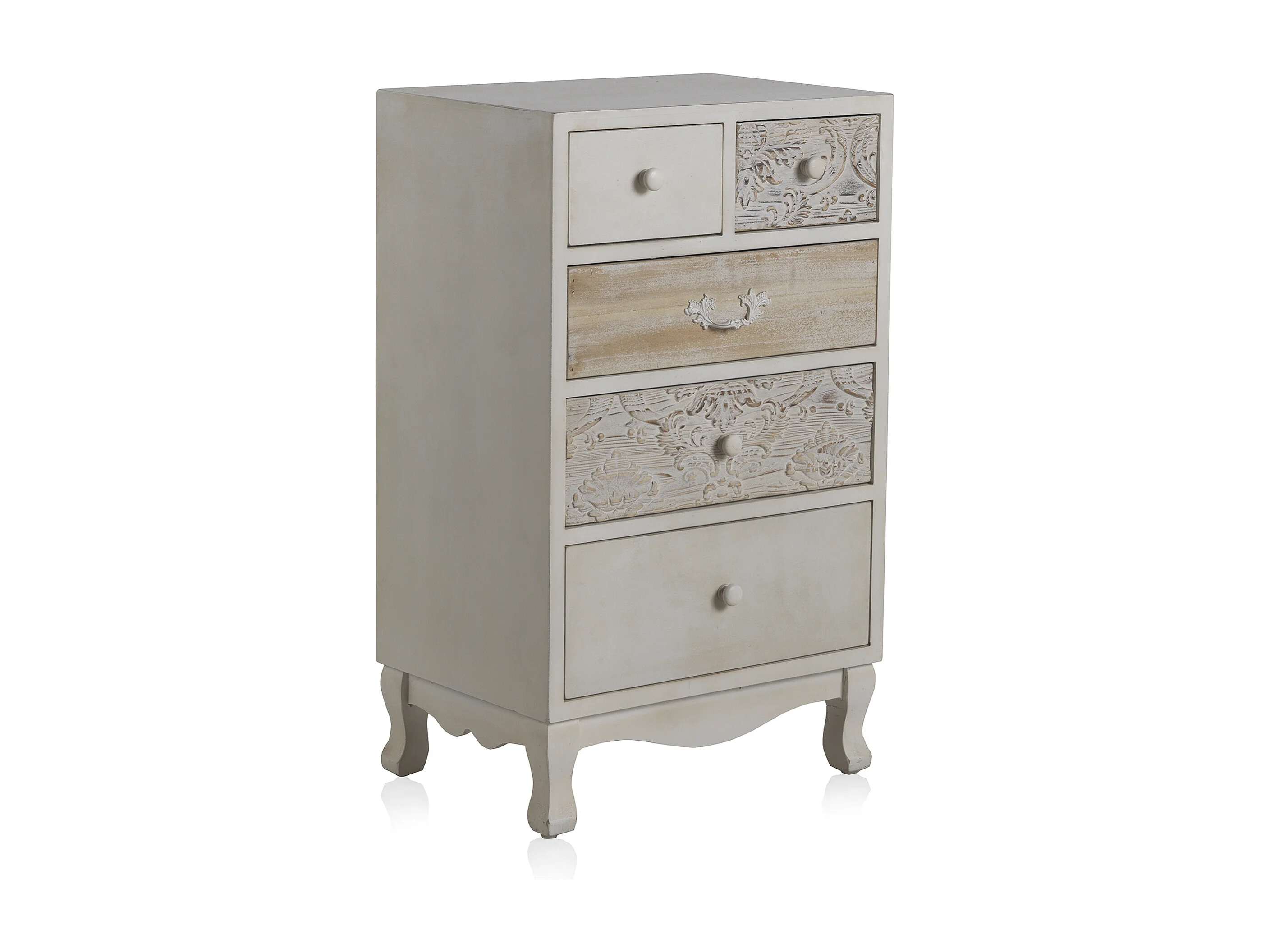 Cómoda folheada a abeto branco com 5 gavetas