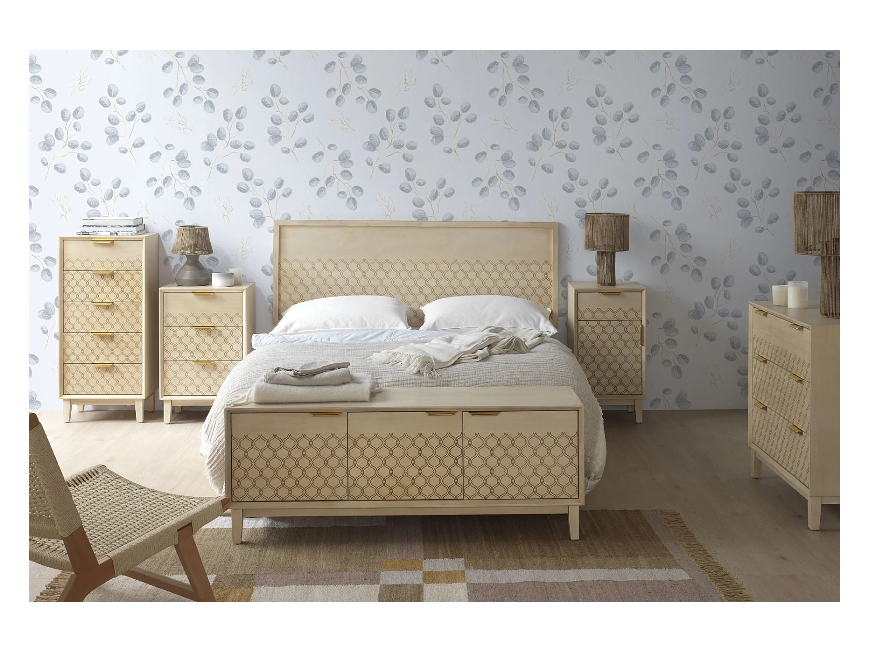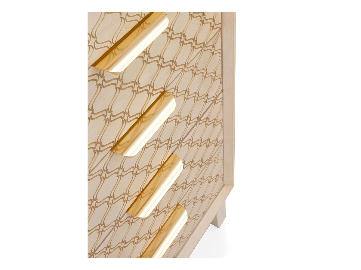 Cómoda folheada a carvalho com 5 gavetas e cor bege