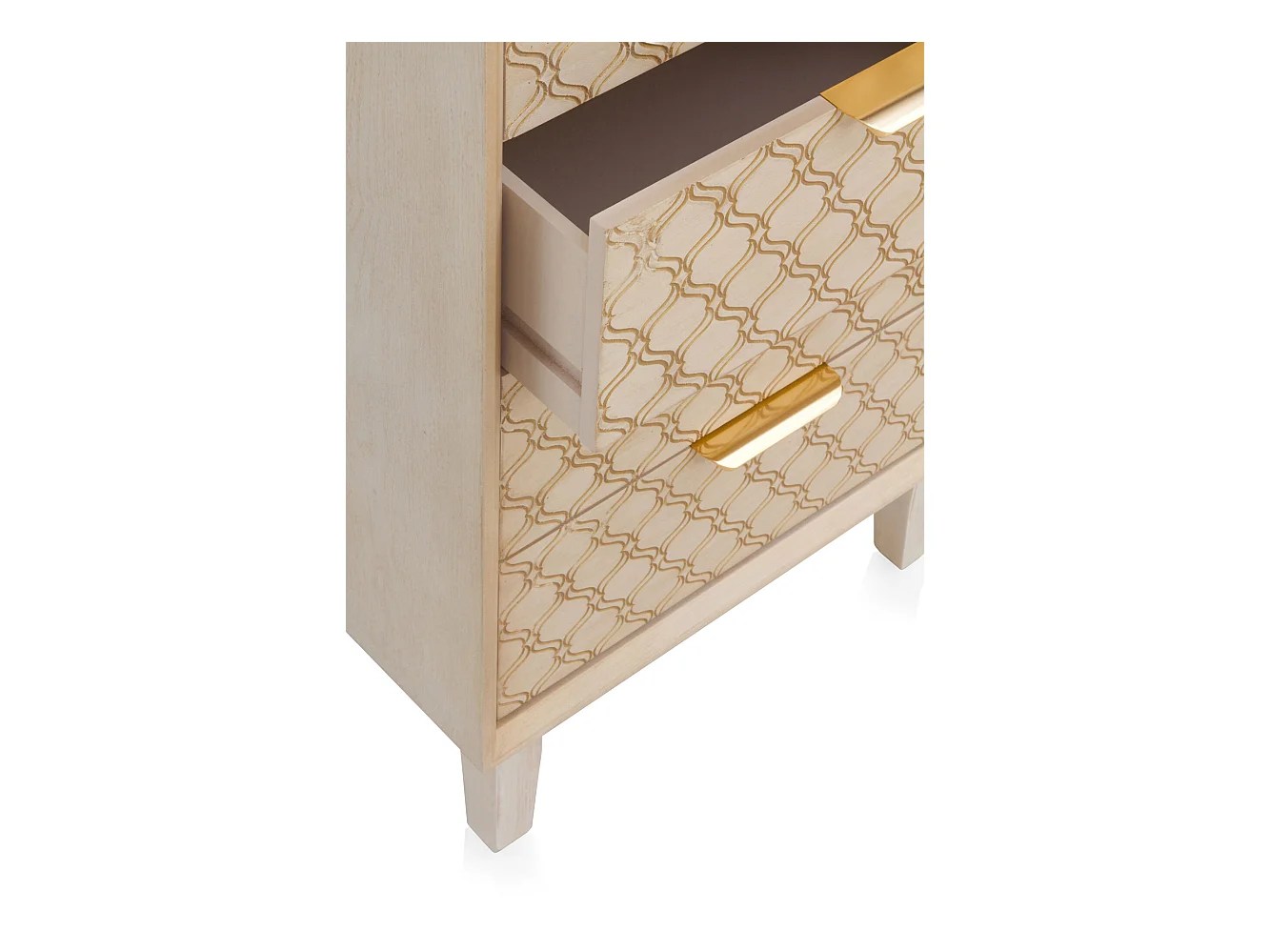 Cómoda com 3 gavetas em folheado de carvalho e cor bege