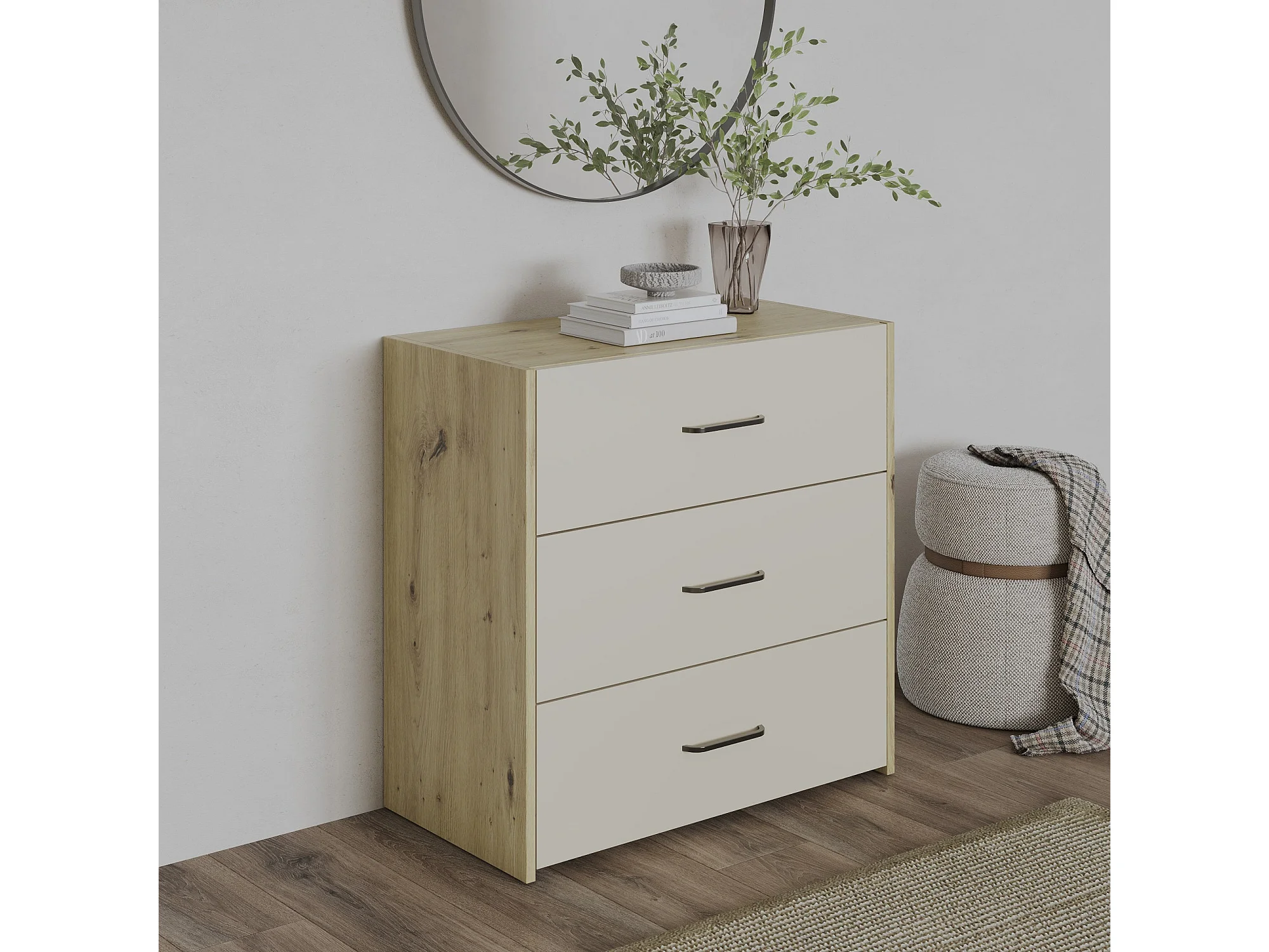 Cômoda haaus Malmo, 3 gavetas, carvalho artisan/argila, 80 x 42 x 80 cm