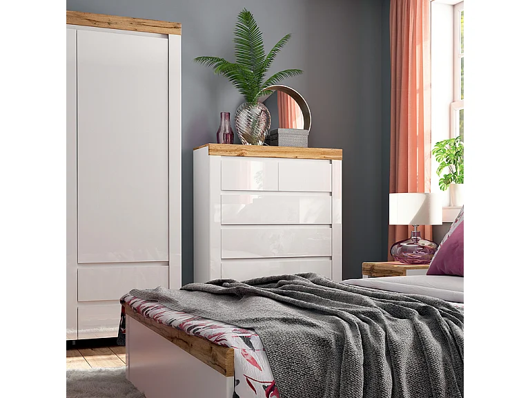 Cómoda Hella branco e madeira 130cm