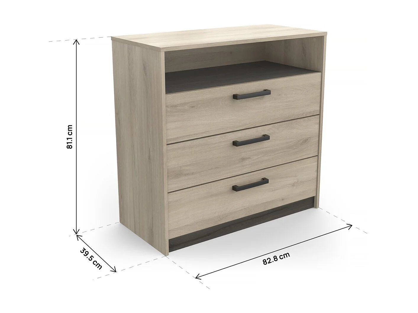 Cómoda Infantil "Watson" Marrom - Madeira de Qualidade, 3 Gavetas Espaçosas, Nicho de Armazenamento Aberto