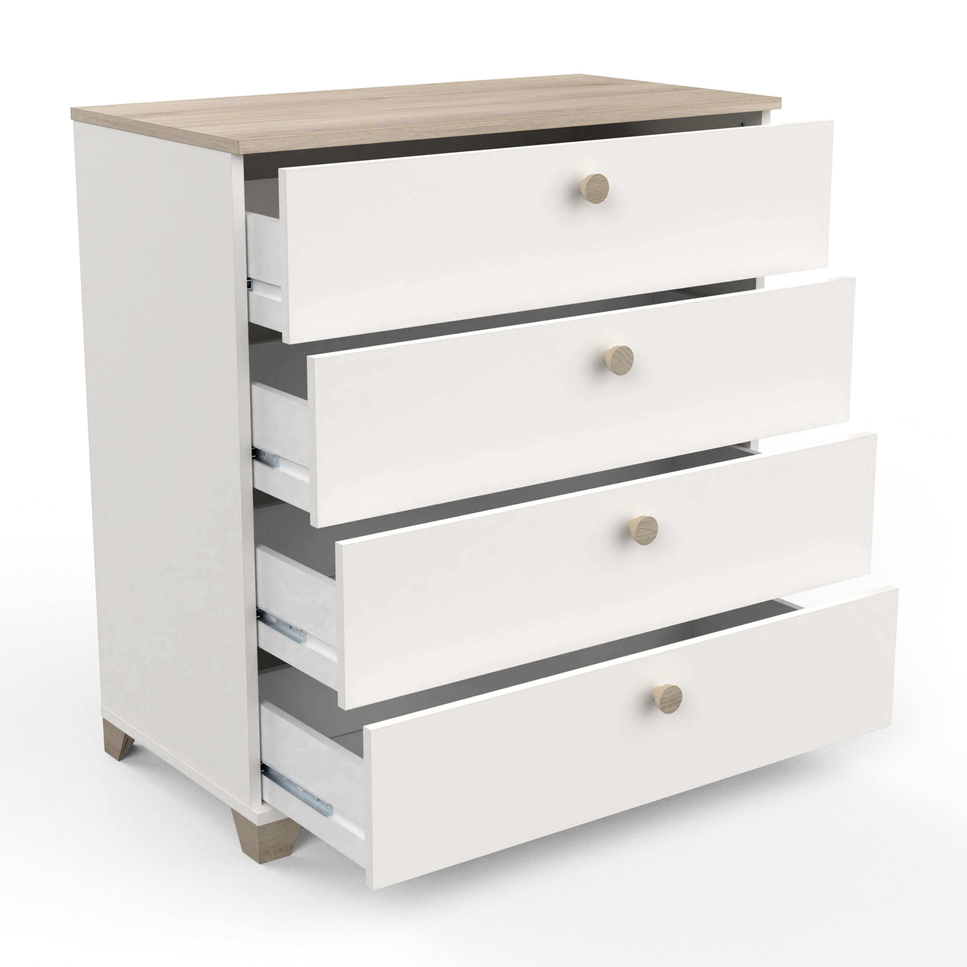 Cômoda Tibete com 4 gavetas, branco fosco/carvalho cambriano, 74x78 cm