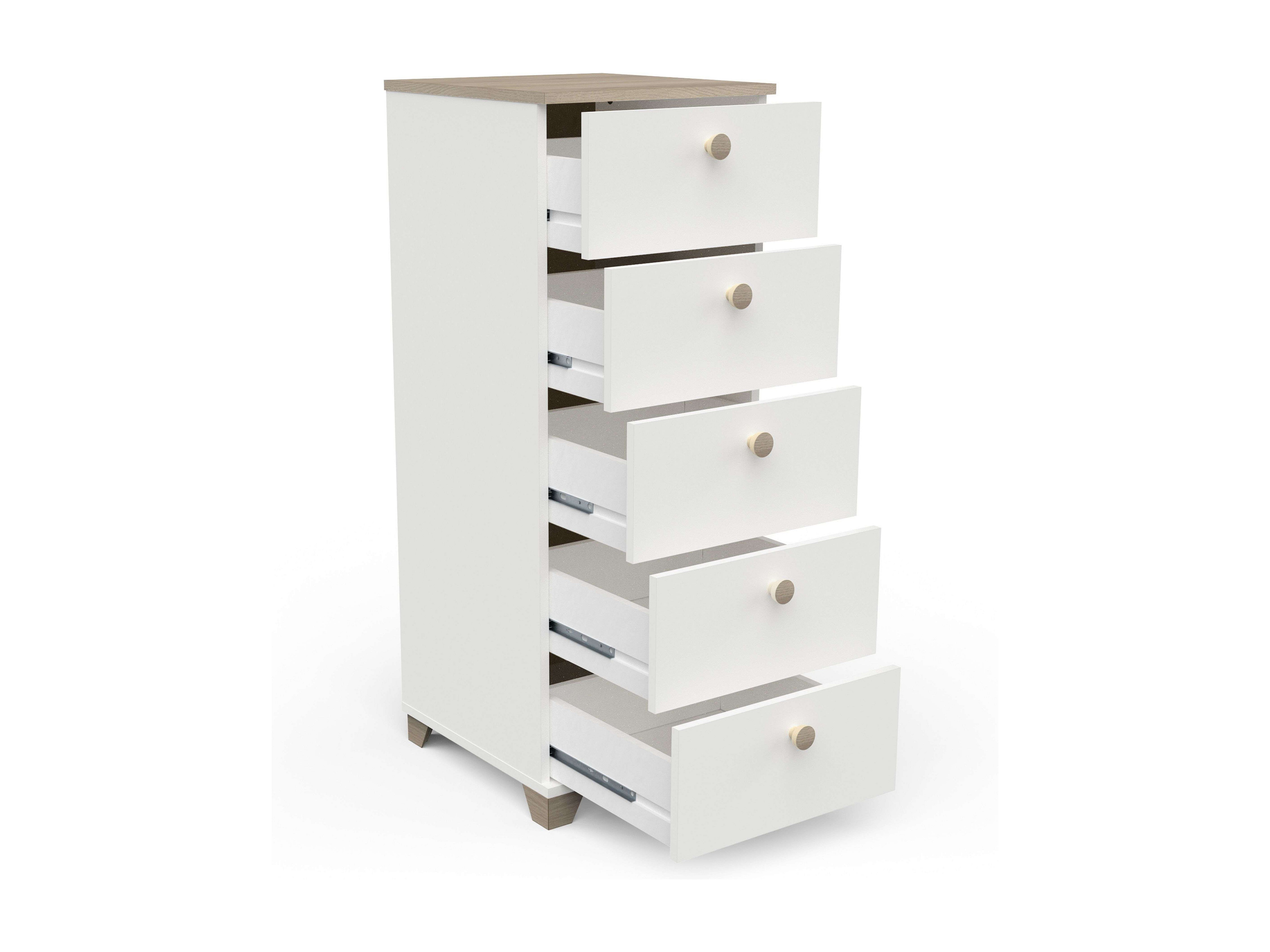 Cômoda Watson 5 gavetas em melamina 107 cm branco e carvalho Kronberg