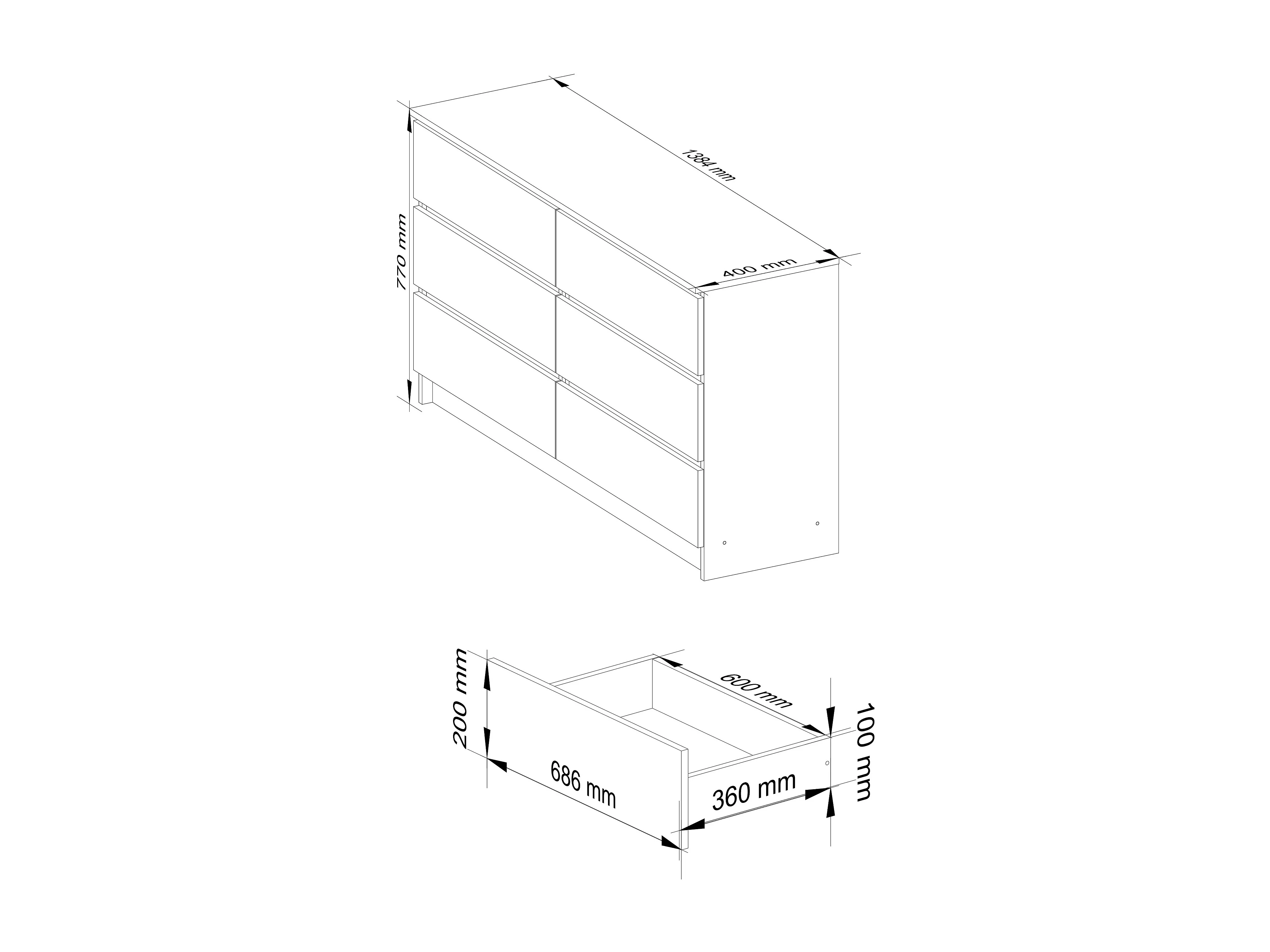Cômoda K140 Carvalho de Sonoma 6 Gavetas