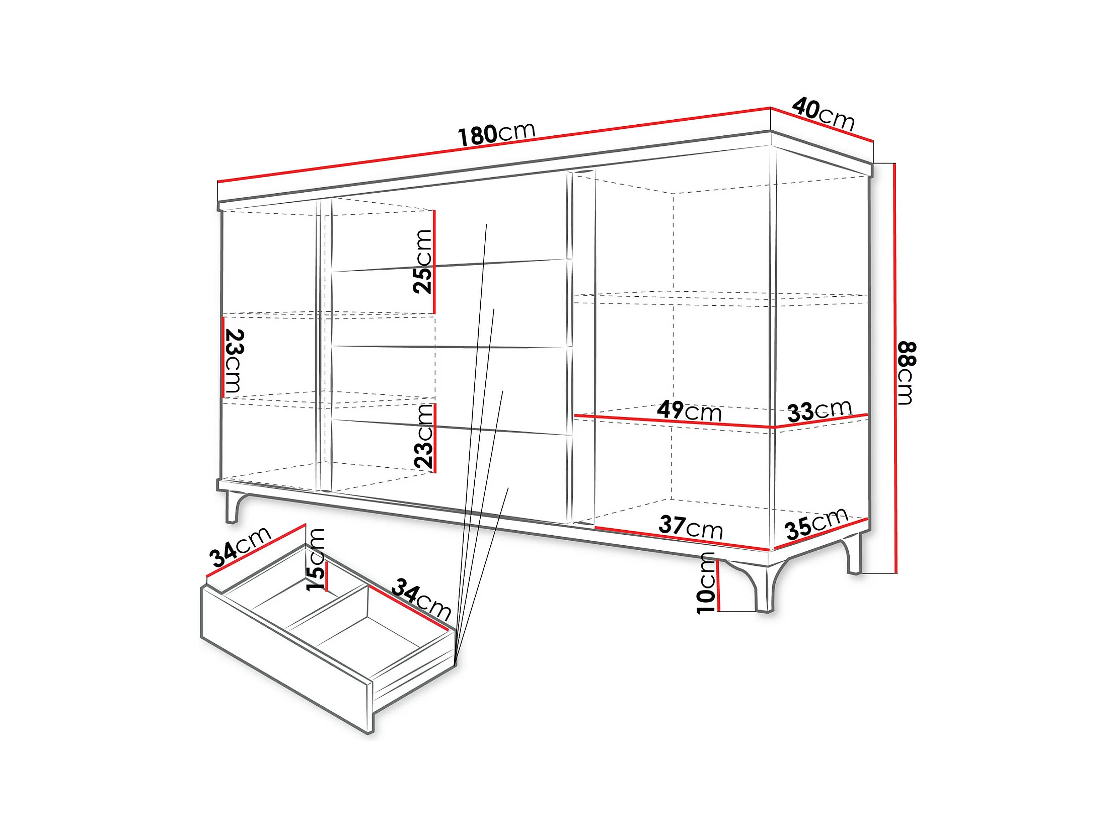 Cómoda Etrmona 106, Com gavetas e portas, Número de gavetas: 3
