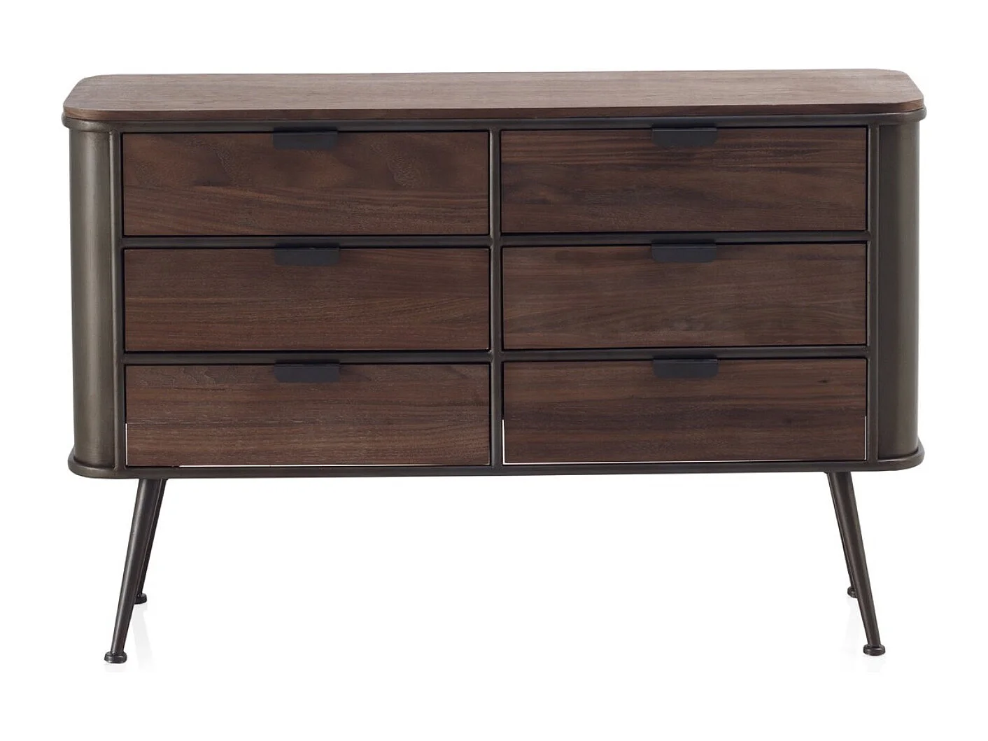 Cómoda metálica com tampo e 6 gavetas em madeira de abeto