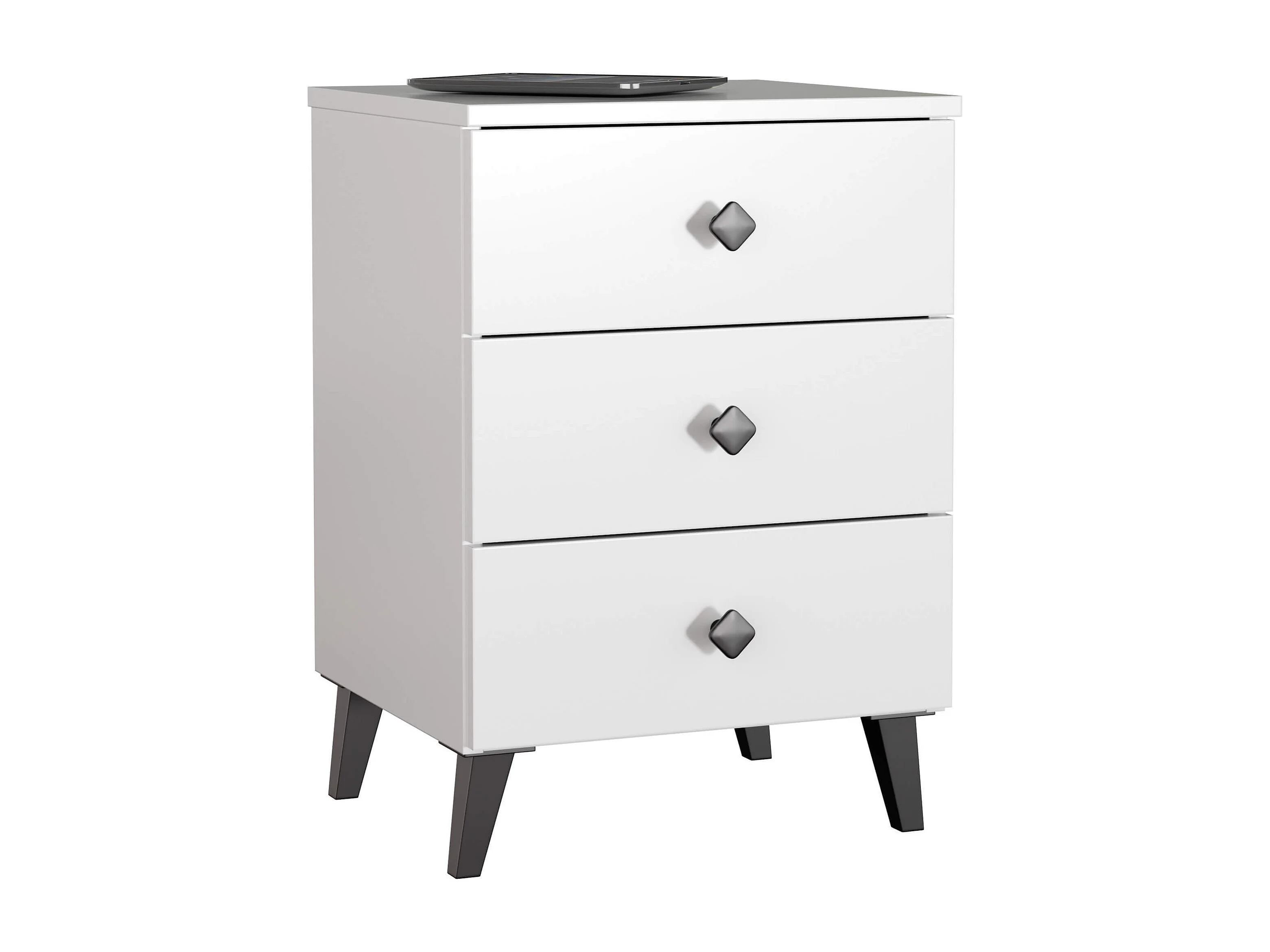 Mesa de Cabeceira Moderna 60cm c/ 3 Gavetas Brancas - Montagem Fácil