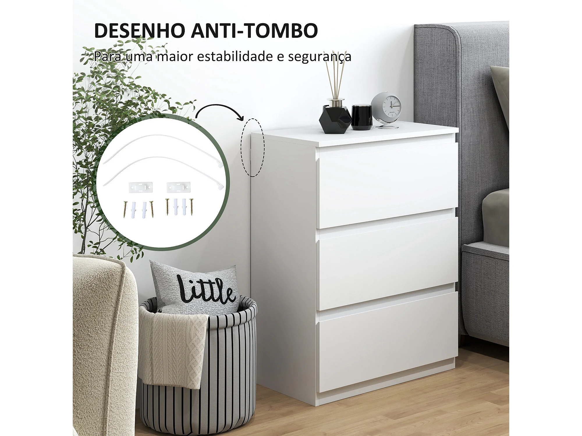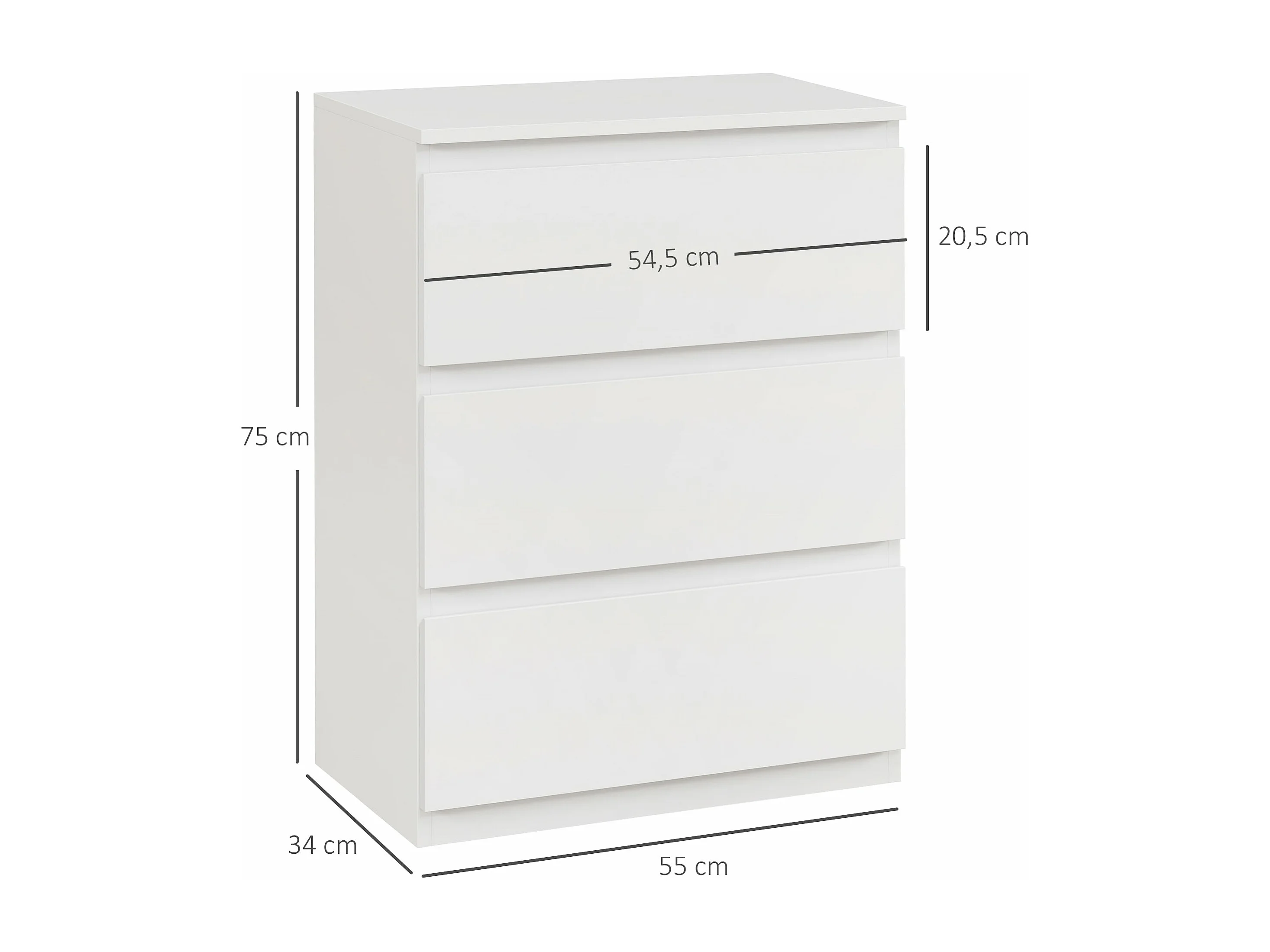 Cómoda Moderna Branca com 3 Gavetas - Estilo Elegante e Funcional para o Seu Lar 55x34x75 cm