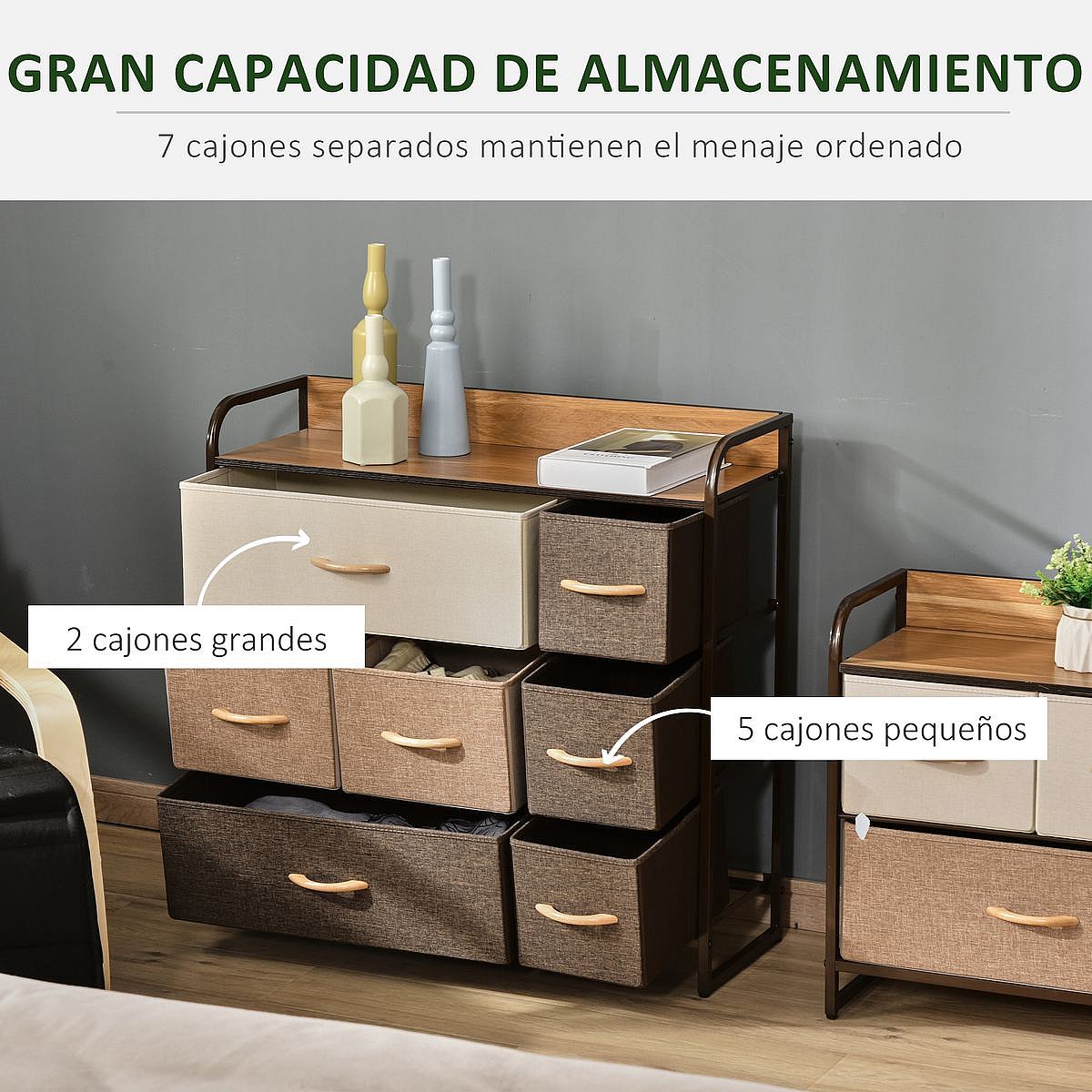 Cómoda Moderna com 7 Gavetas Dobráveis e Estrutura Metálica para Organização Prática