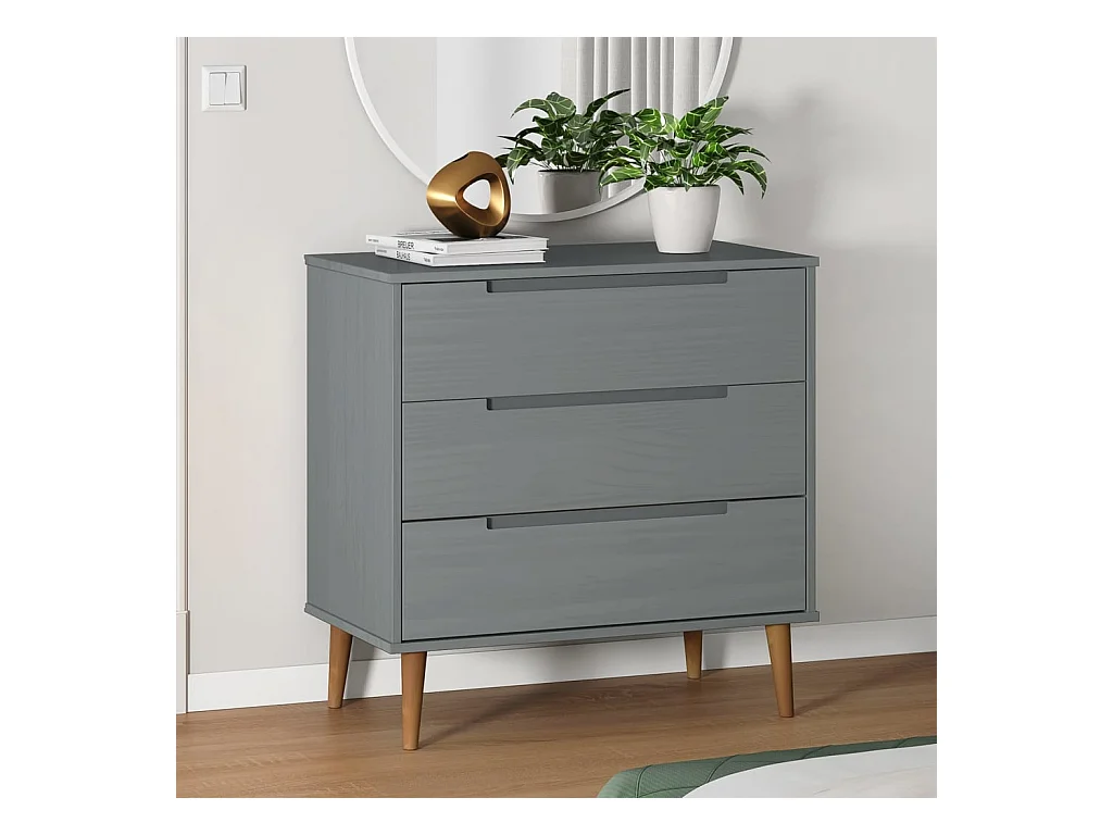 Cômoda MOLDE cinza 80x40x80 cm Madeira maciça de pinho