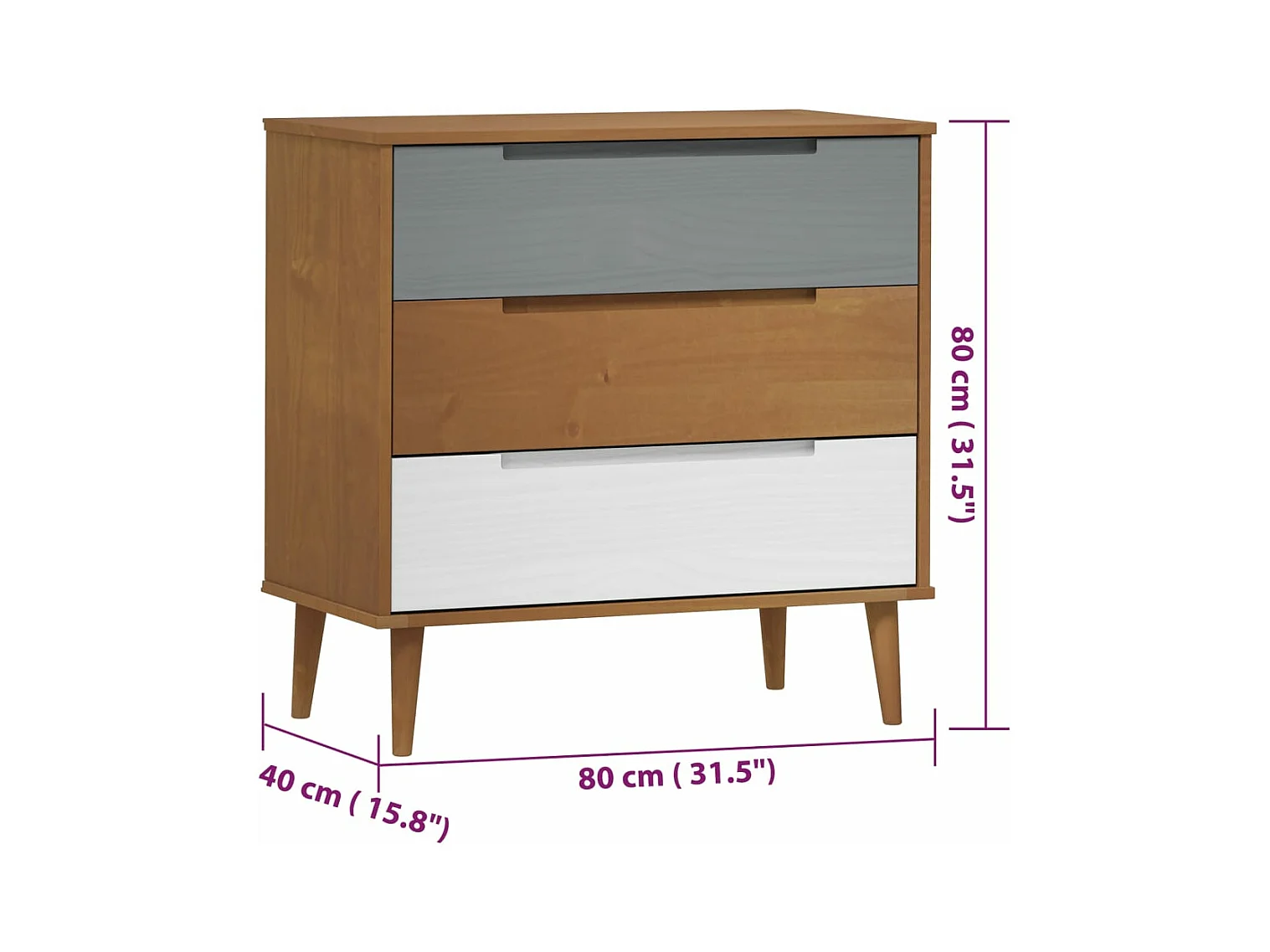 Cômoda MOLDE marrom 80x40x80 cm Madeira maciça de pinho