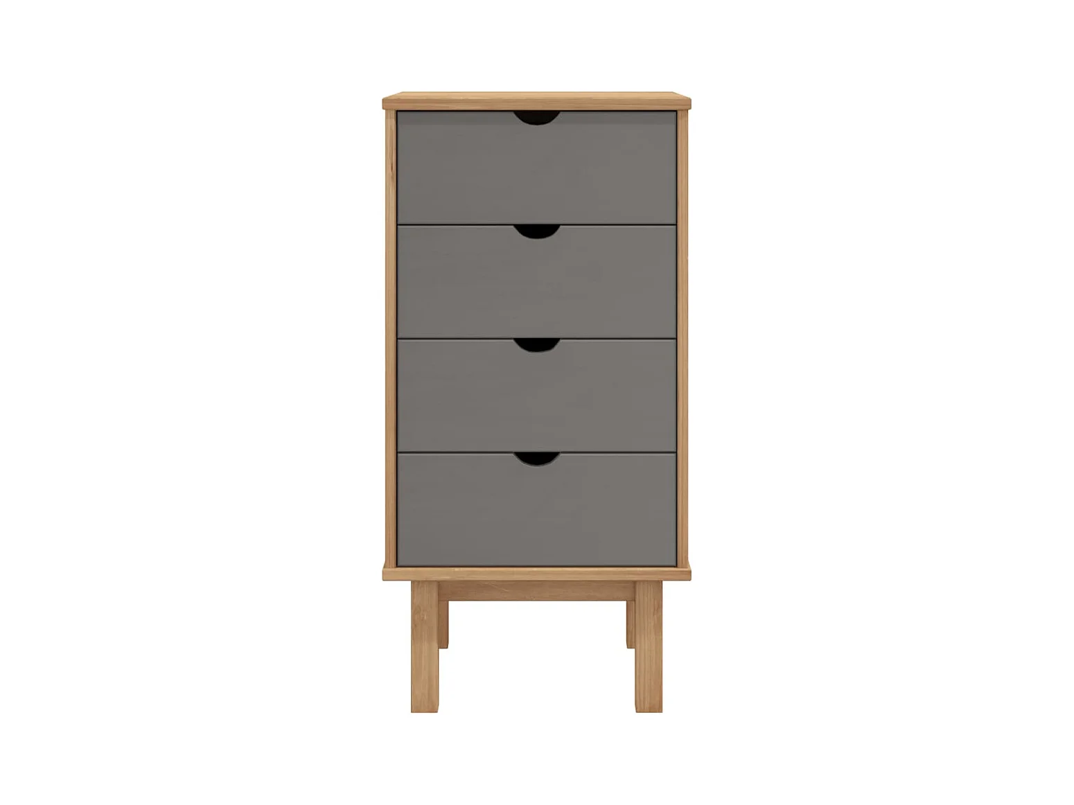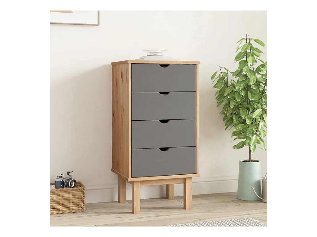 Armário de gavetas OLDEN em madeira maciça de pinho cinza e marrom