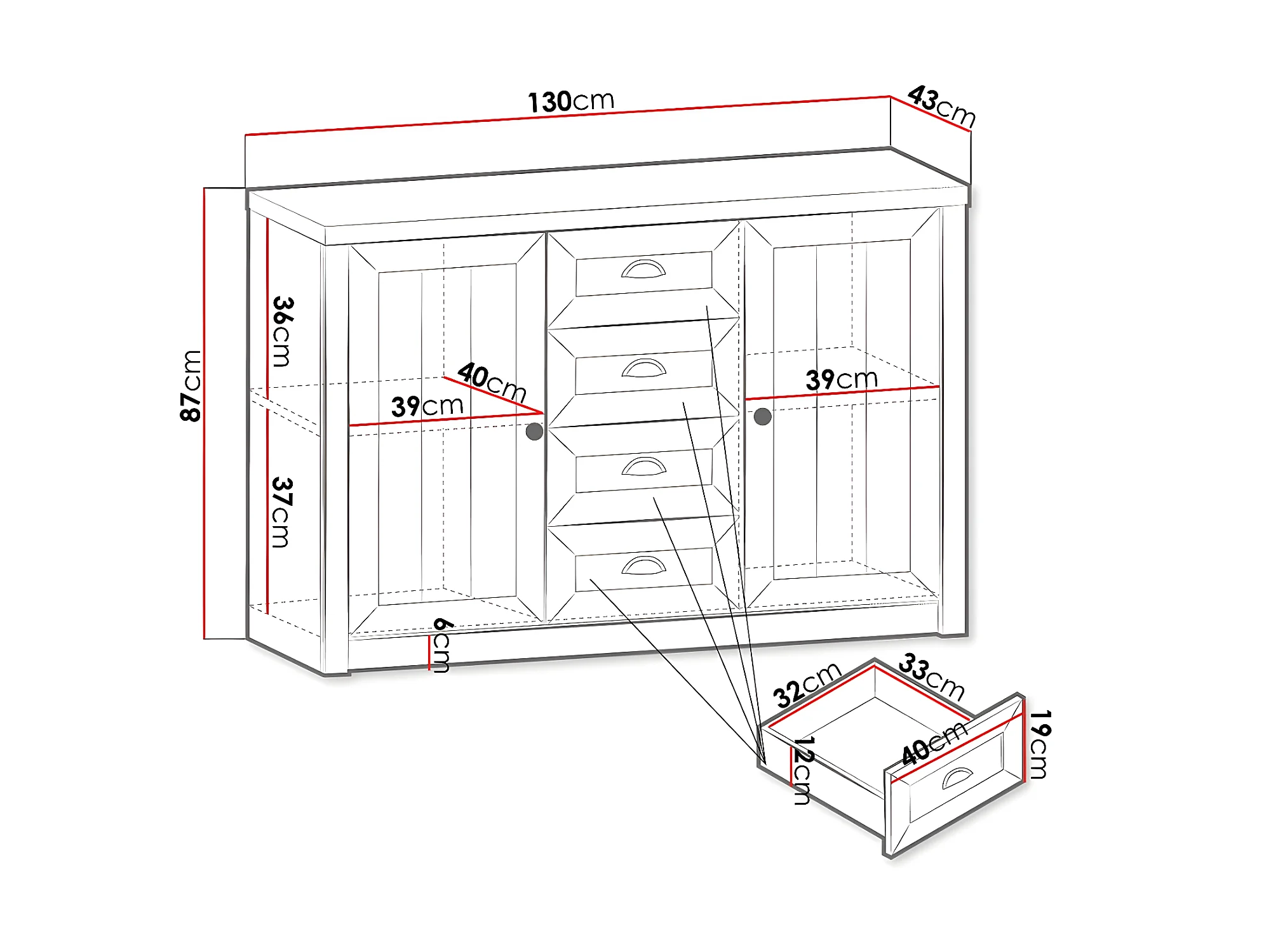 Cómoda Domvera 108, Com gavetas e portas, Número de gavetas: 2