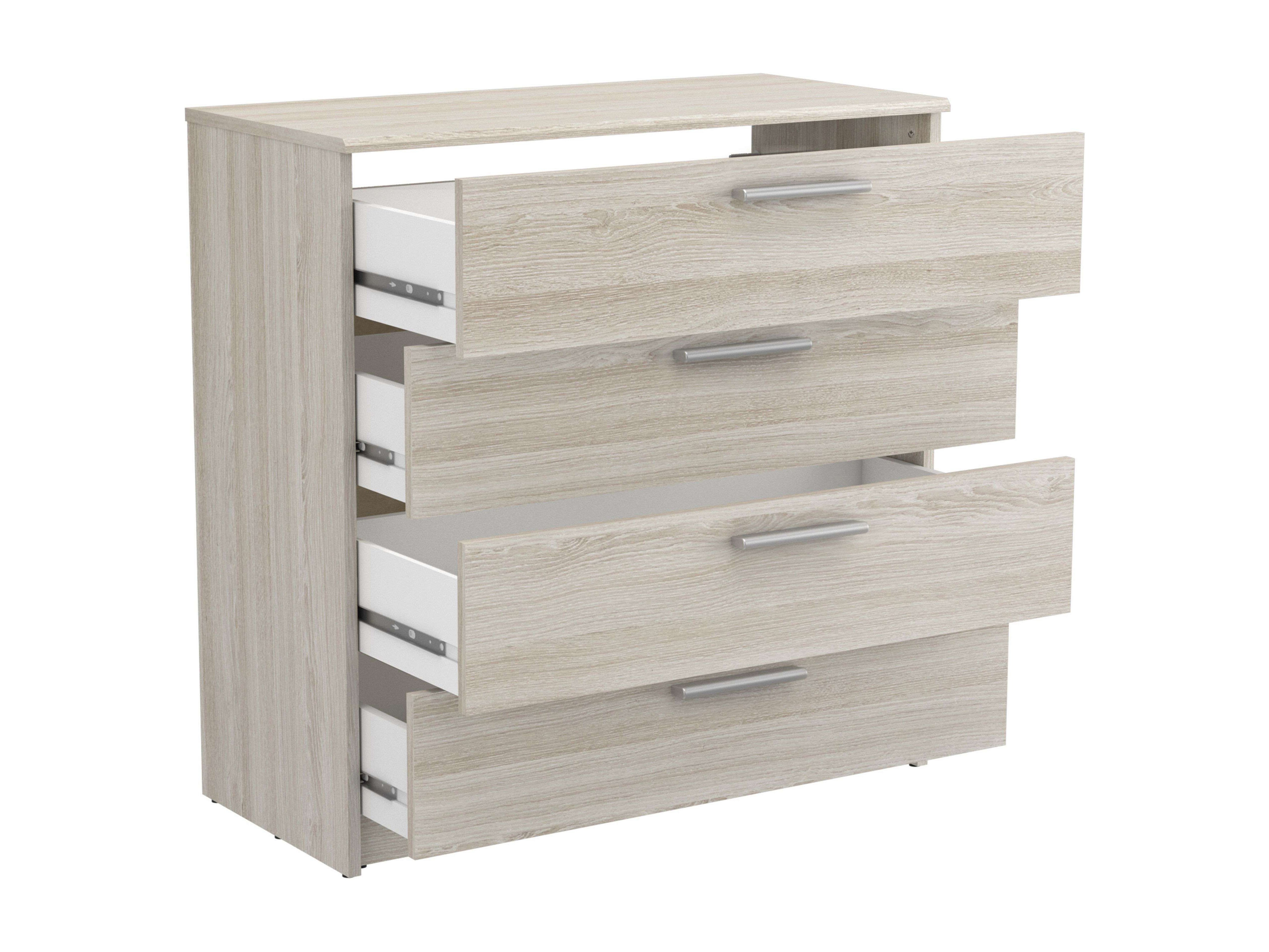 Cômoda com 4 gavetas e guias de metal, branco fosco do Tibete ou carvalho cambriano, 74x78 cm