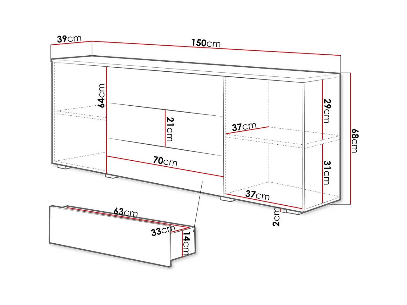 Cómoda Charlotte 143, Com gavetas e portas, Número de gavetas: 1