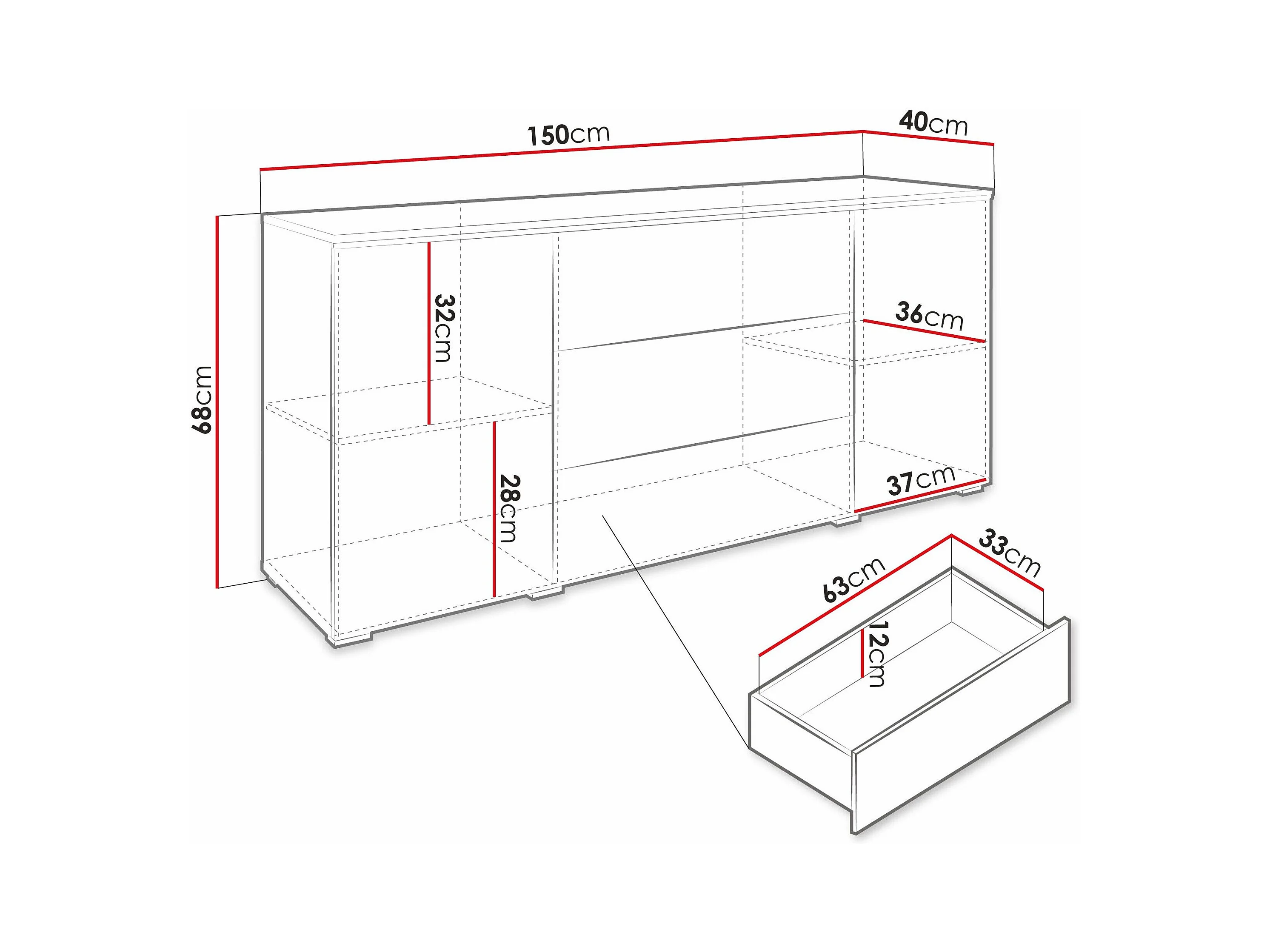 Cómoda Domvera 107, Com gavetas e portas, Número de gavetas: 2