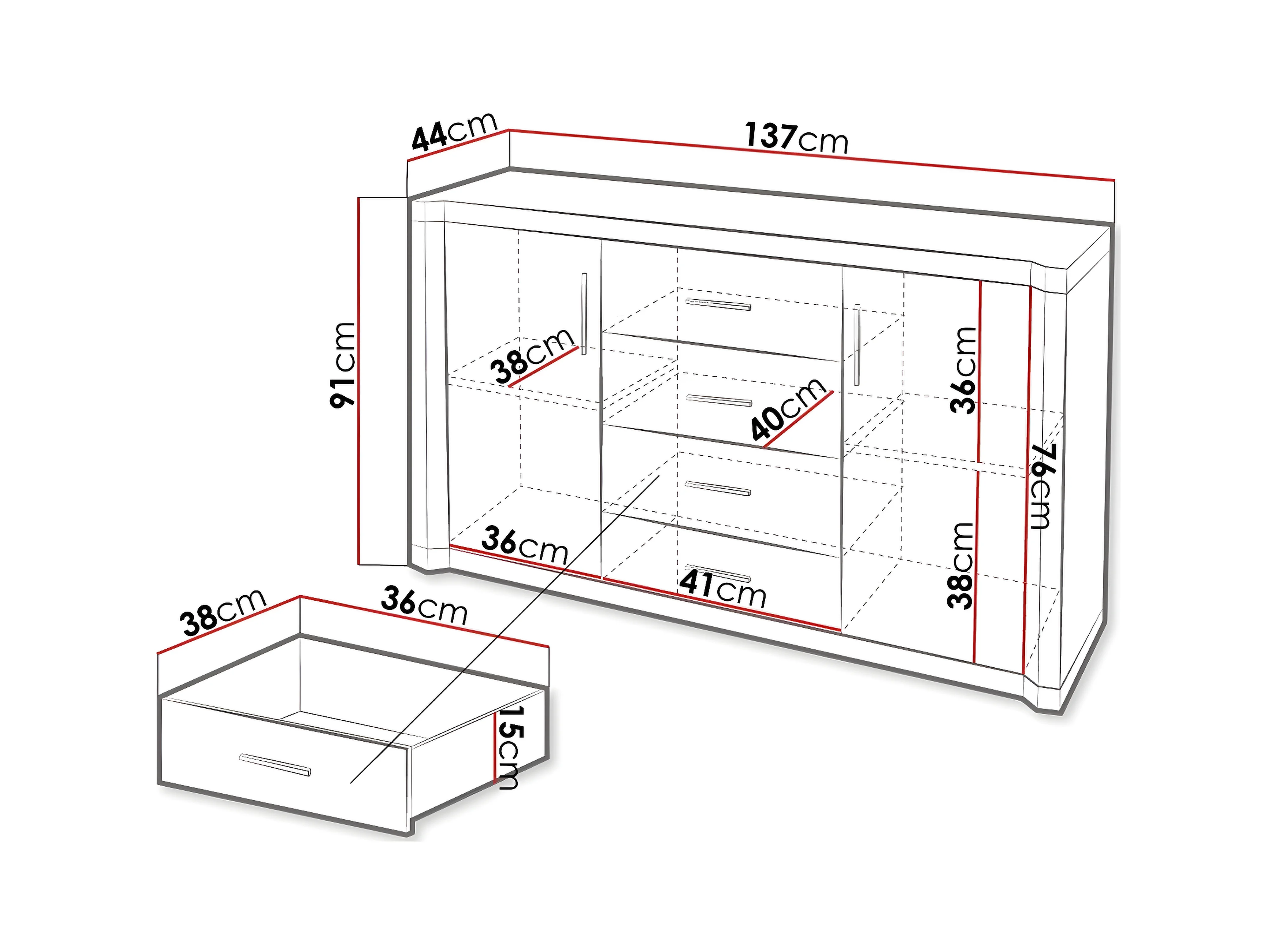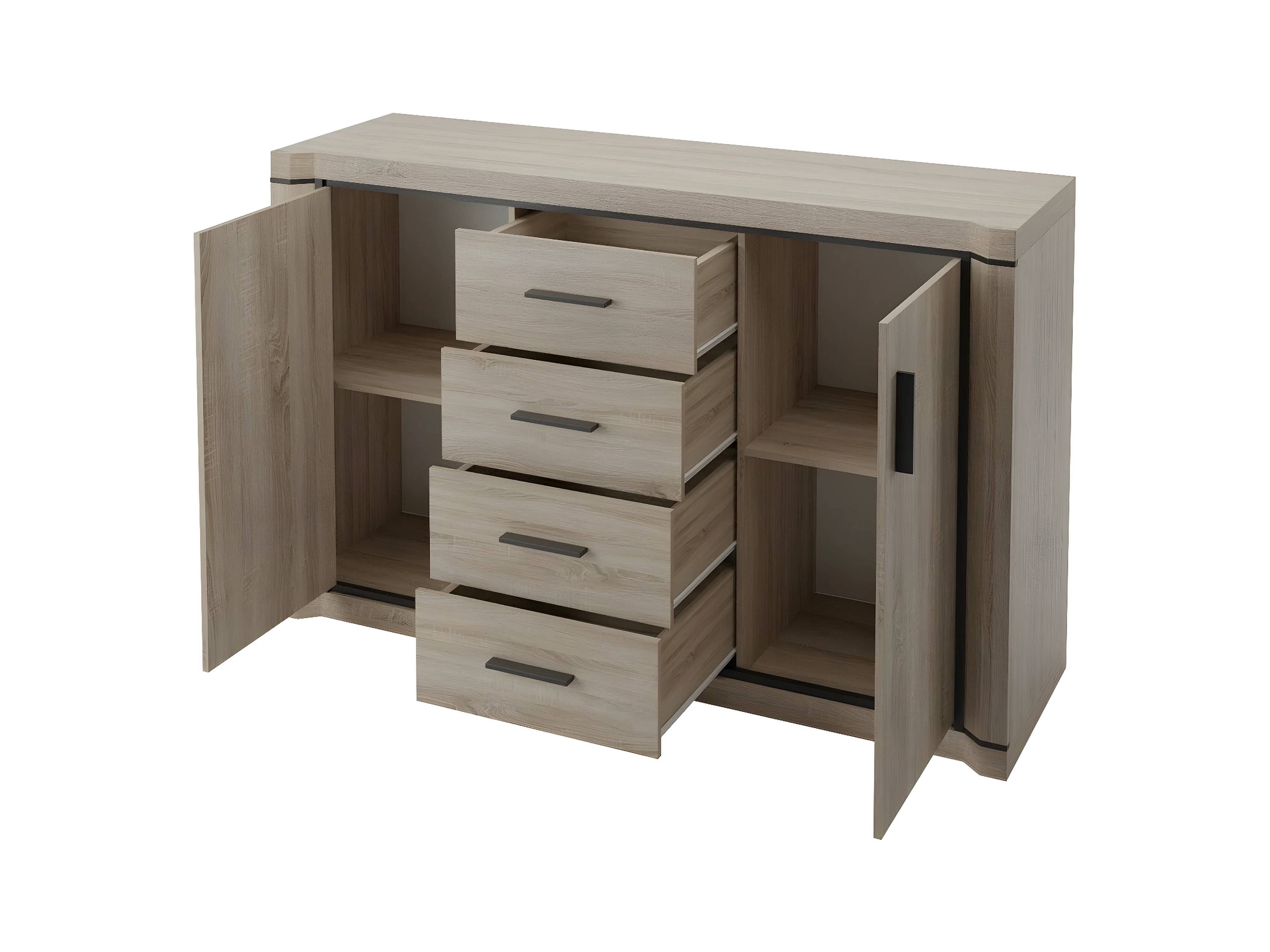 Cómoda Serfeno 115, Com gavetas e portas, Número de gavetas: 4