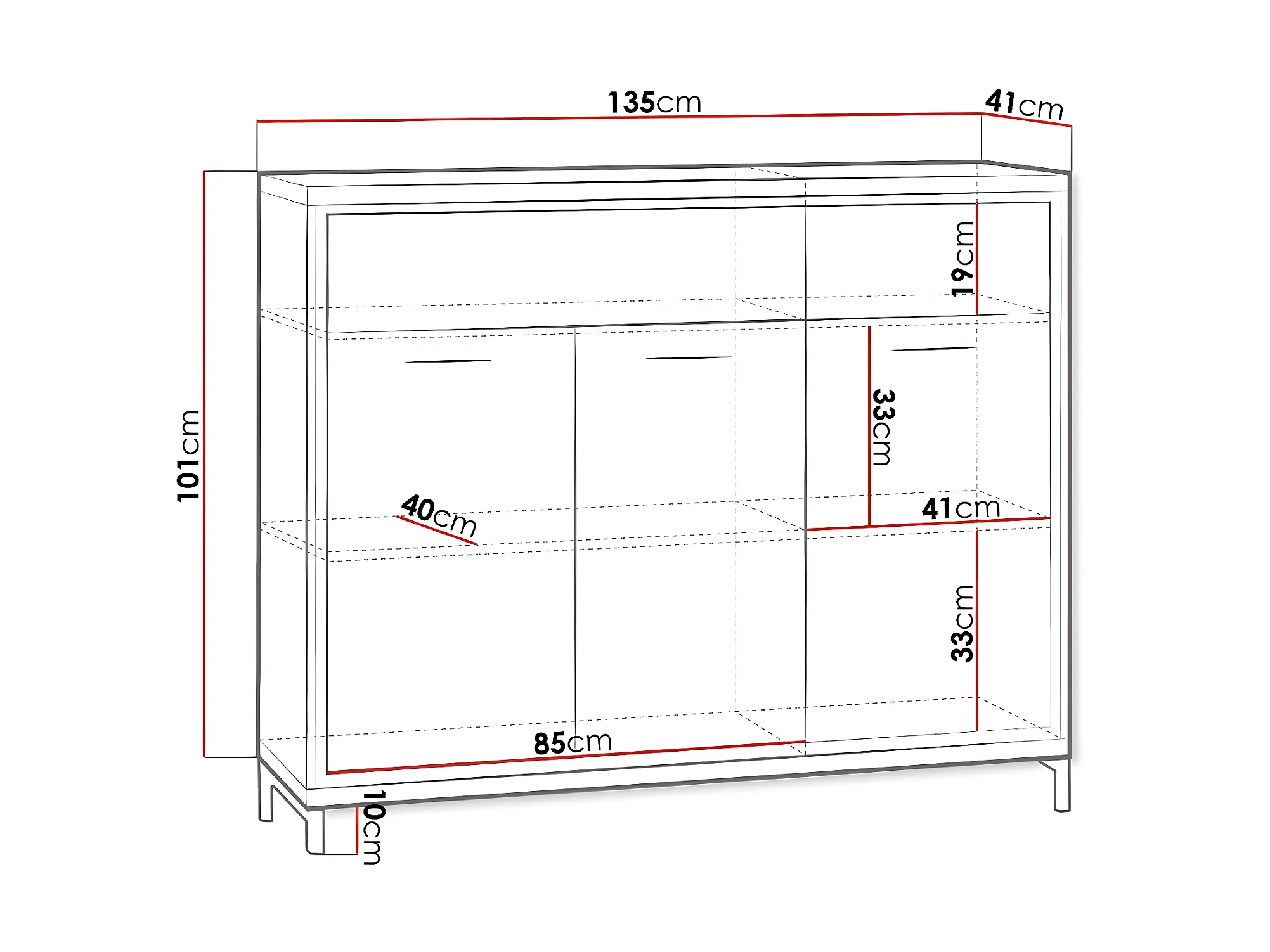 Cómoda Fiomeri 101, Com gavetas e portas, Número de gavetas: 4