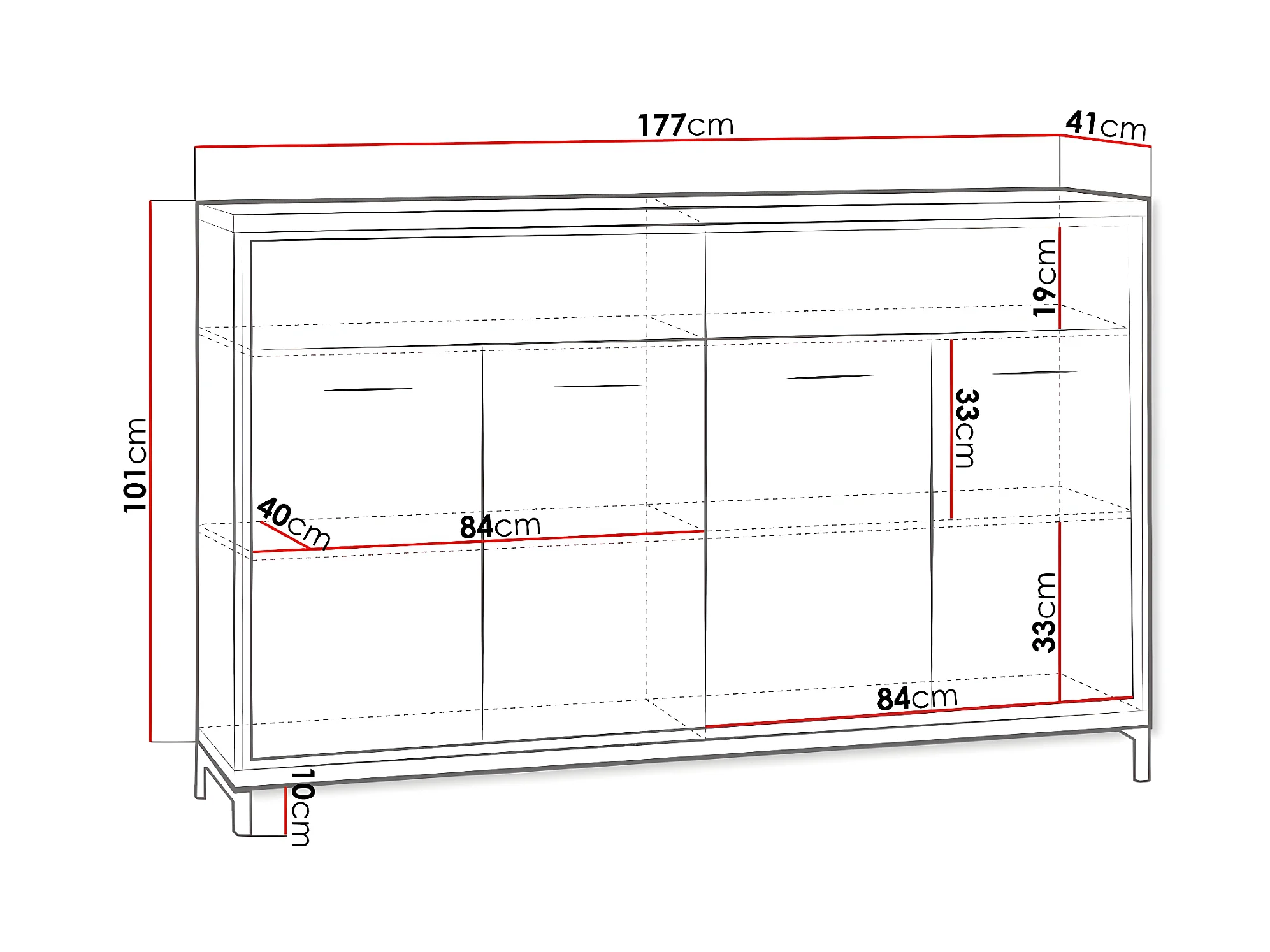 Cómoda Fiomeri 101, Com gavetas e portas, Número de gavetas: 4