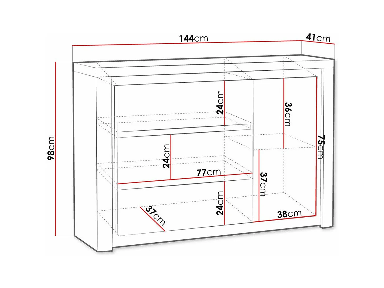 Cómoda Etrmona 107, Com gavetas e portas, Número de gavetas: 3