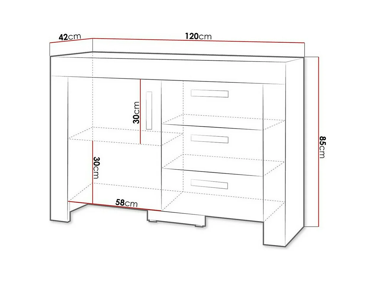 Cómoda Melfeli 108, Com gavetas e portas, Número de gavetas: 3