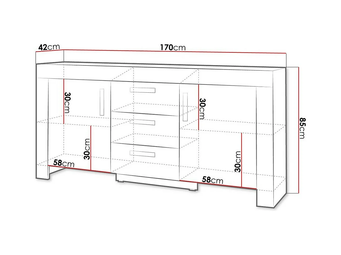 Cómoda Etrmoru 140, Com gavetas e portas, Número de gavetas: 3