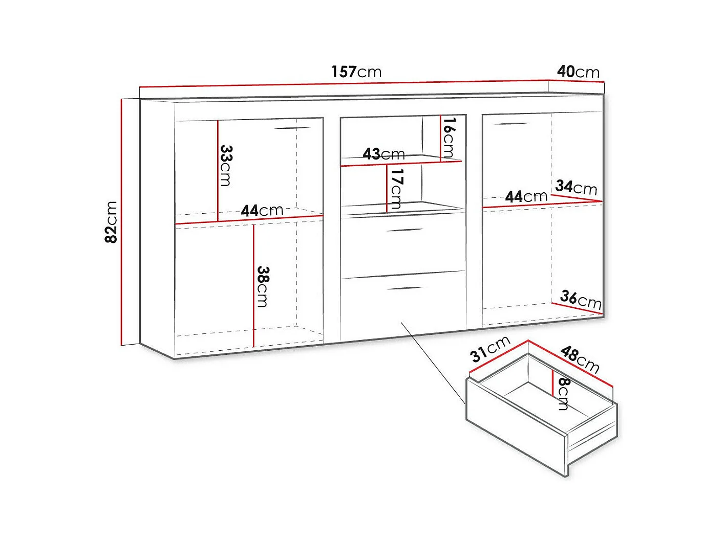 Cómoda Levmari 100, Com gavetas e portas, Número de gavetas: 1