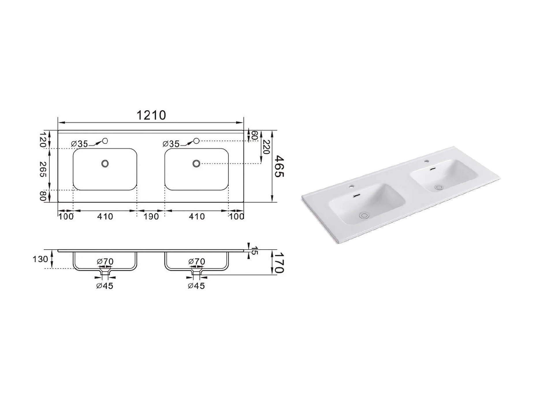 Composição banheira dupla SOLMIRA cinzento pomba