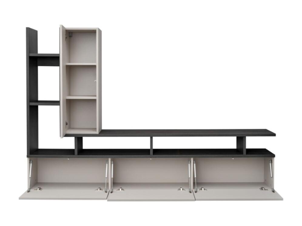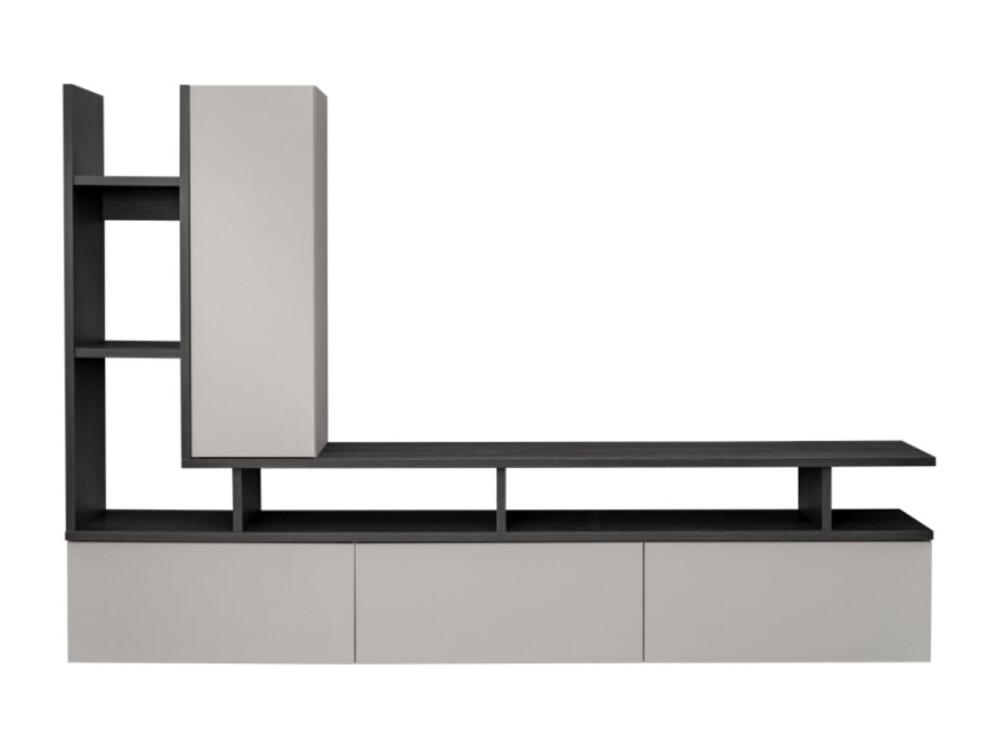 Composição de parede CRONOS – Móvel para TV e armazenamentos suspensos – Carvalho Grafite e Cashmere