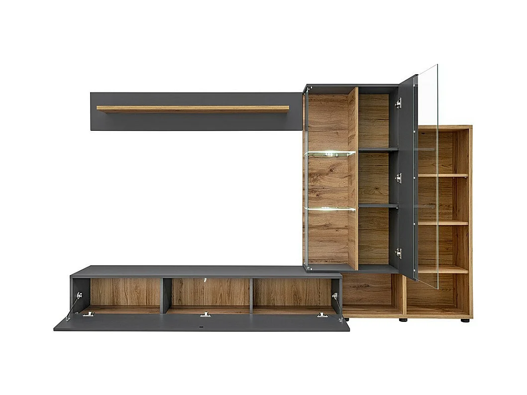 Composição mural coleção KLIS 2 cores cinza antracite e carvalho. LED incluído. Móvel de TV design.