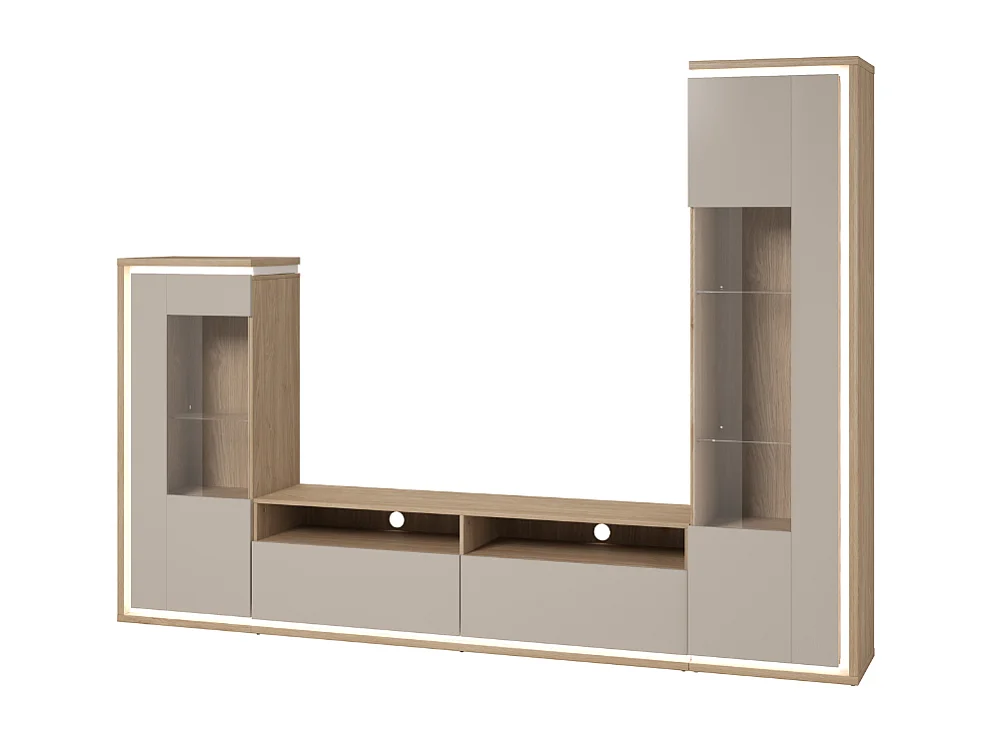 Composição para TV AMBIHOME BARIOS - Caxemira/Carvalho, c/iluminação LED