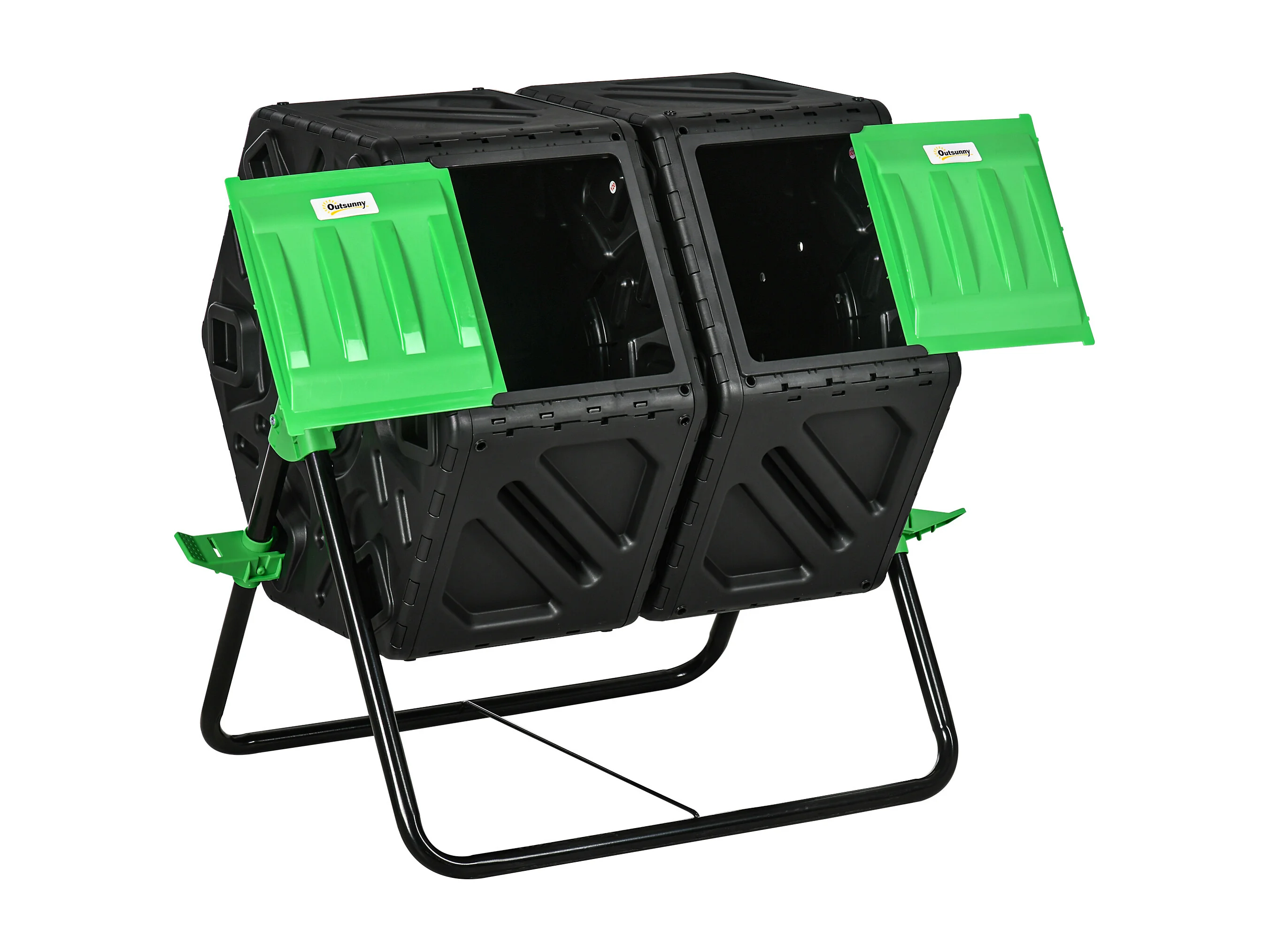 Compostor Giratório de Dupla Câmara ÉcoCycle 160L - Sustentável e Eficiente em Preto e Verde