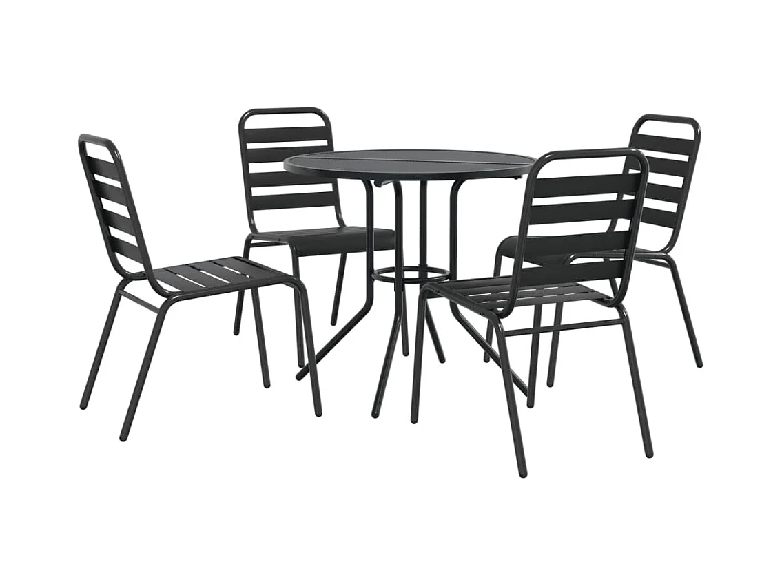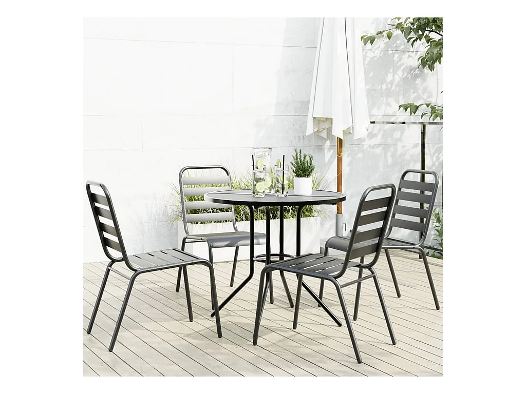 Conj. cadeiras jardim encastrar 5pcs aço revestido pó antracite PT440678