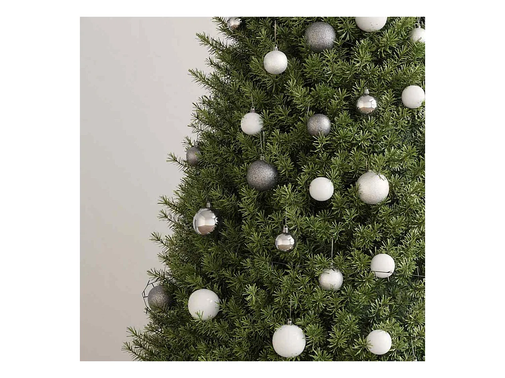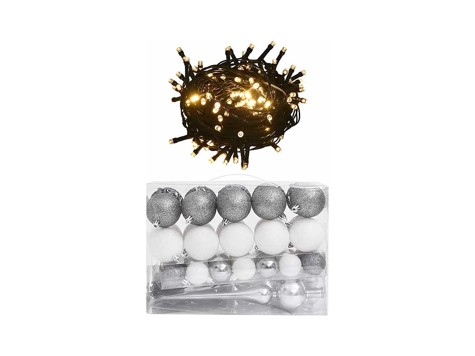 Conj. de bolas de natal 61 pcs c/ pico e 150 LEDs branco/cinza