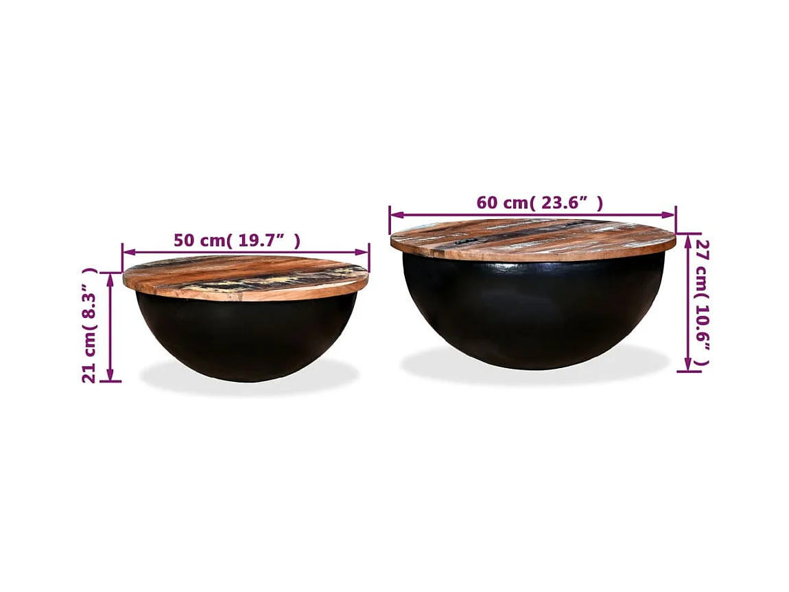 Conj. mesas centro 2 pcs madeira reciclada preto forma tigela