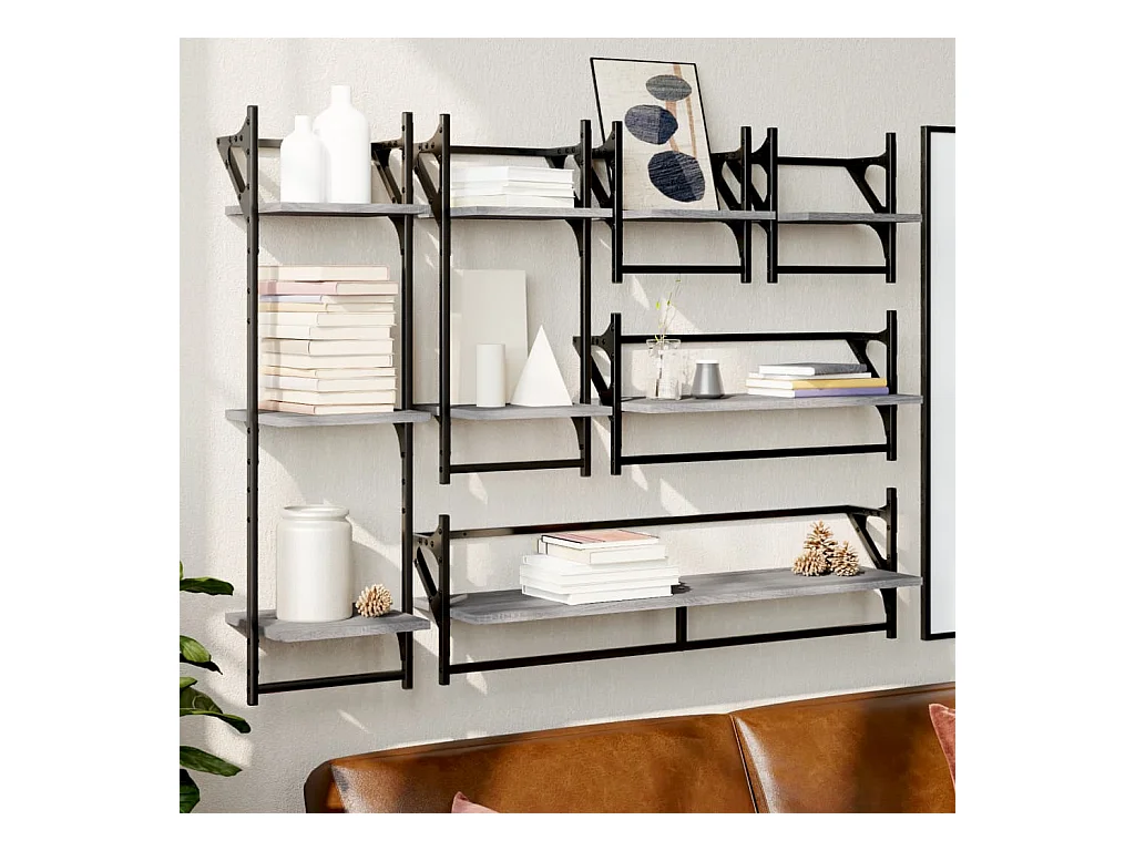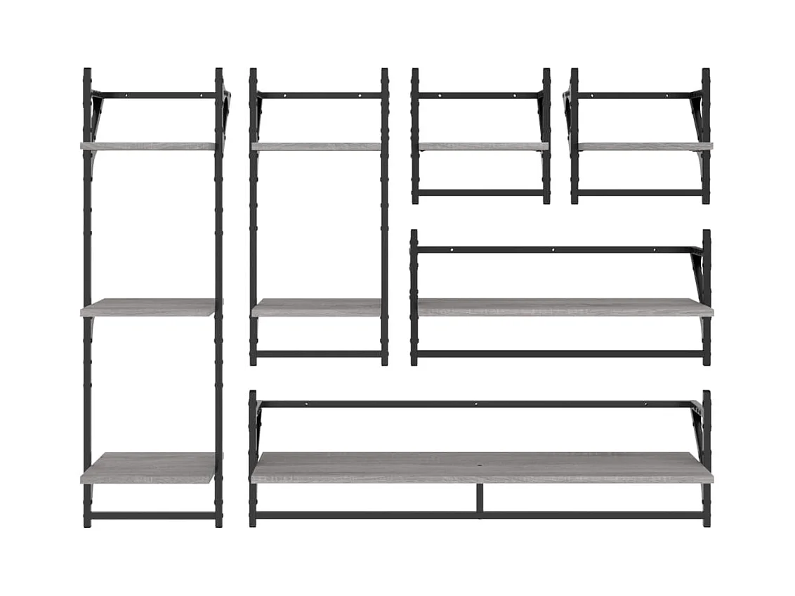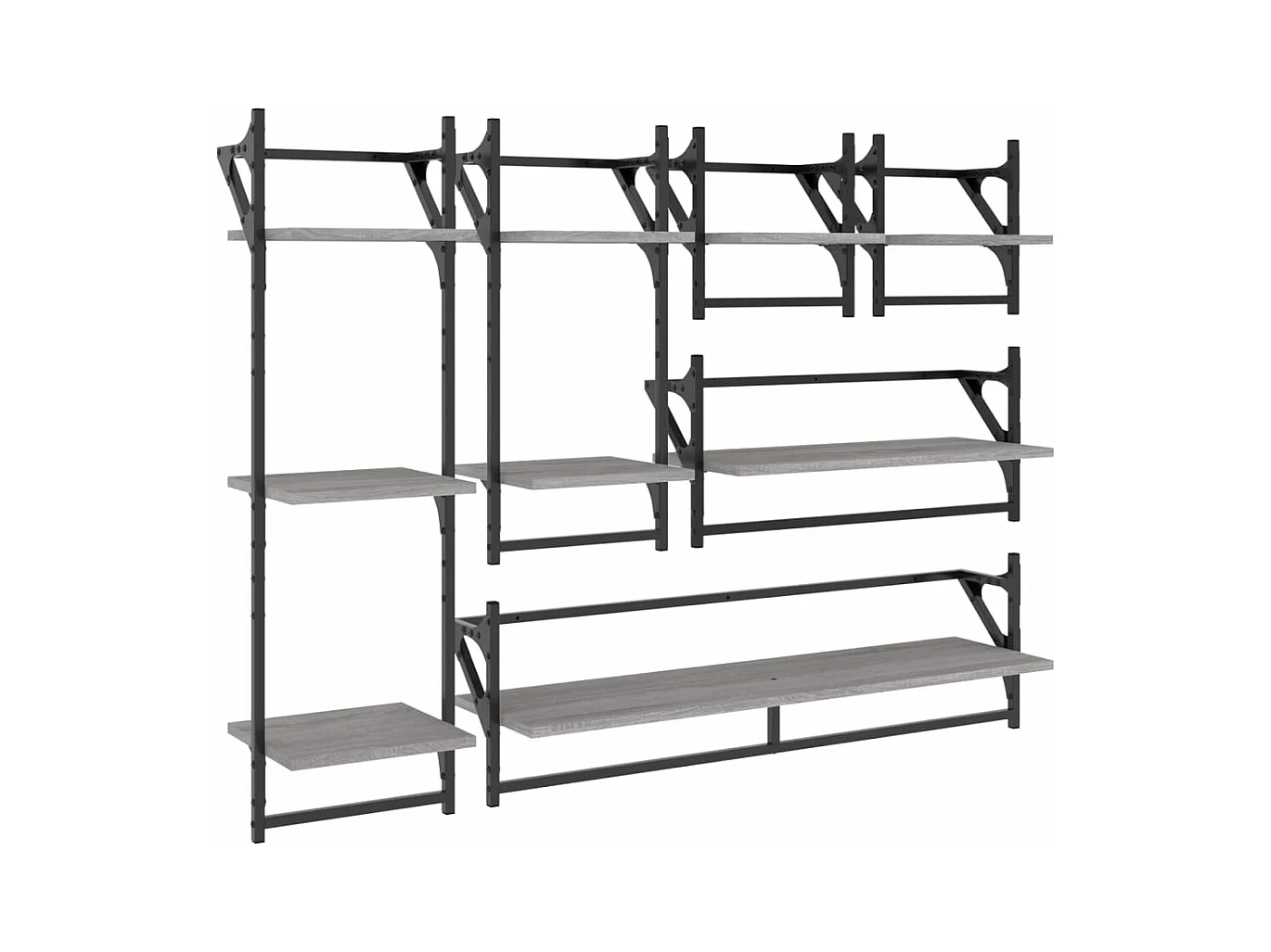 Conj. prateleiras c/ barras 6pcs derivados madeira cinza sonoma