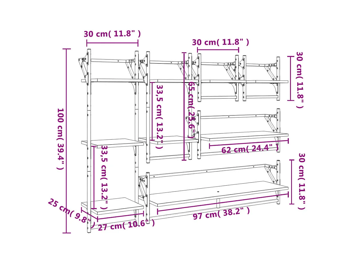 Prateleira parede 100x25x50 cm deriv. de madeira cinza sonoma