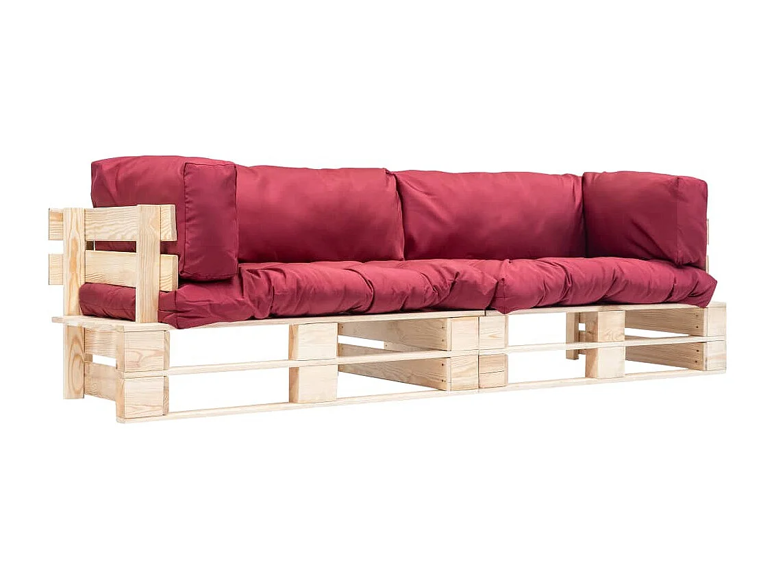 Conj. sofá de paletes 2 pcs com almofadões vermelhos pinho