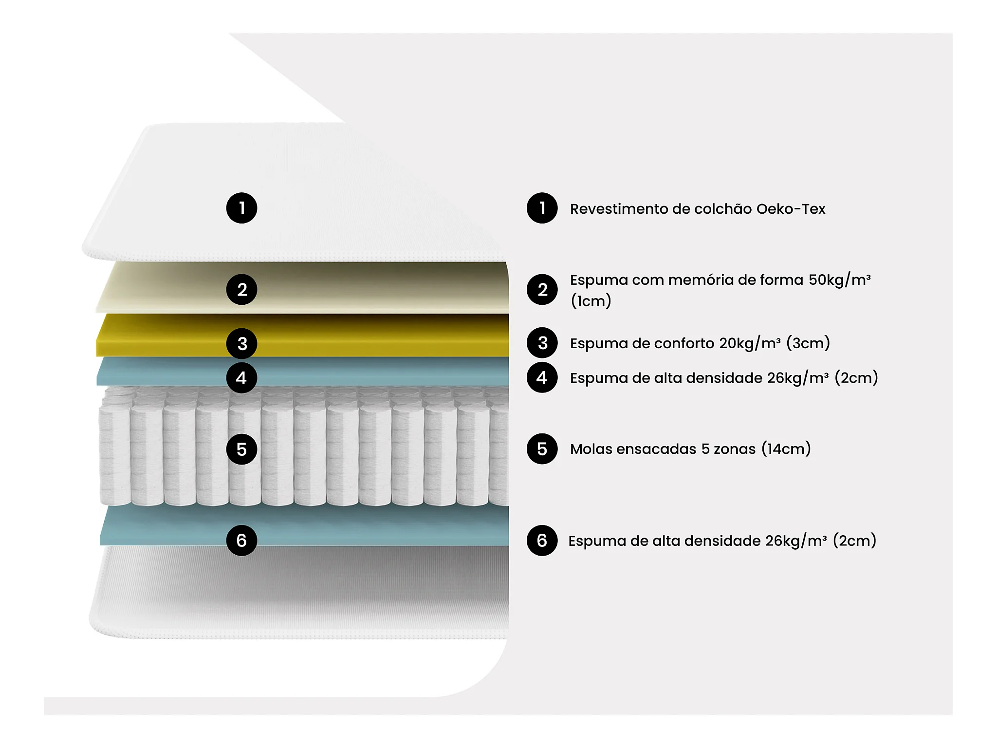 Conjunto 160x200 cm sommier com espaço de arrumação natural claro + colchão molas ensacadas 5 zonas acolhimento memória de forma esp. 23 cm - BABYLONE de YSMÉE