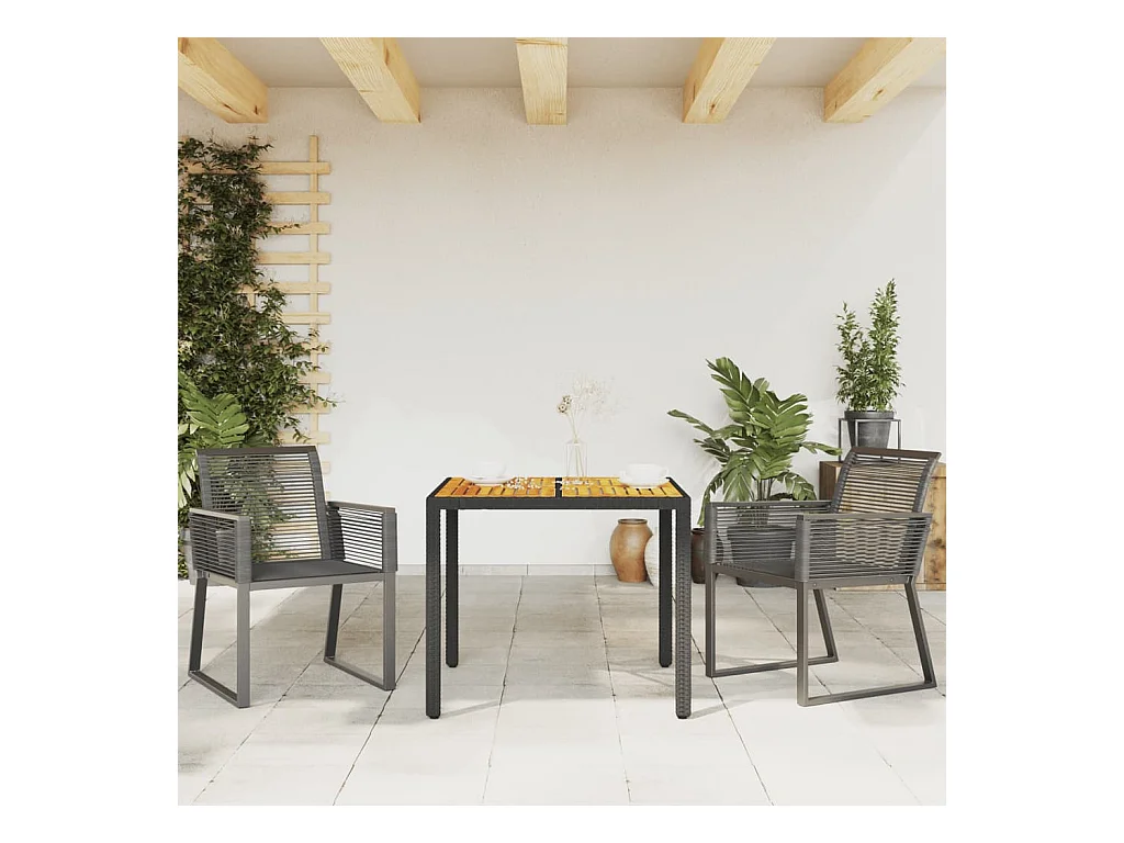 Cadeiras de jardim com almofadões 2 pcs vime PE/acácia preto PT102781
