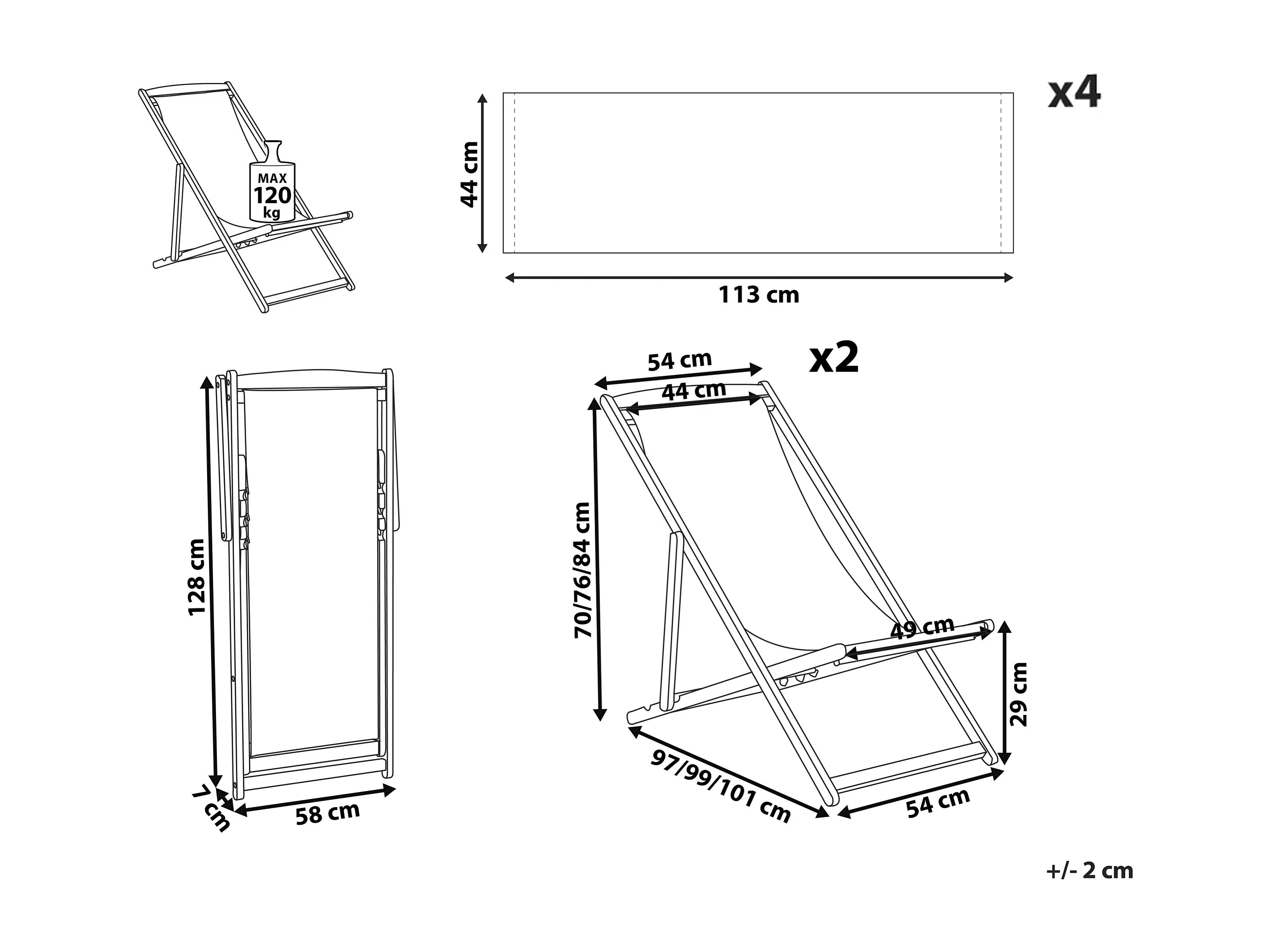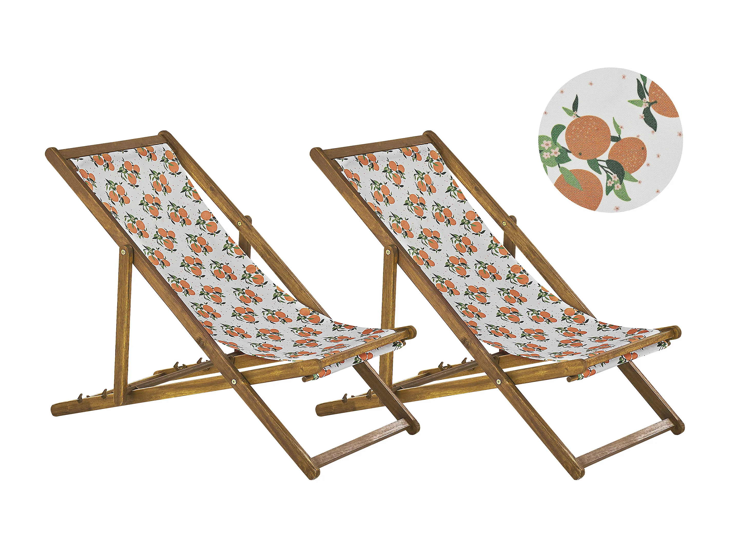 Conjunto de 2 cadeiras de praia dobráveis ANZIO com tecidos de substituição Motivo floral Madeira de acácia Castanho claro