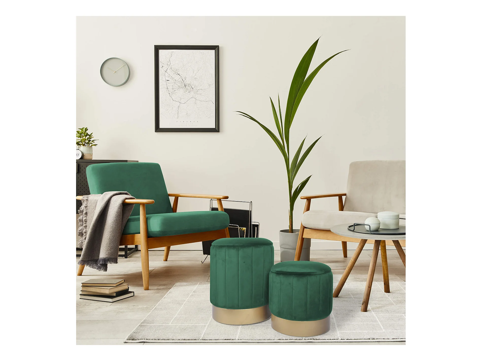 Conjunto 2 Pufes Veludo Pufes de arrumação Bancos Estofados Verde