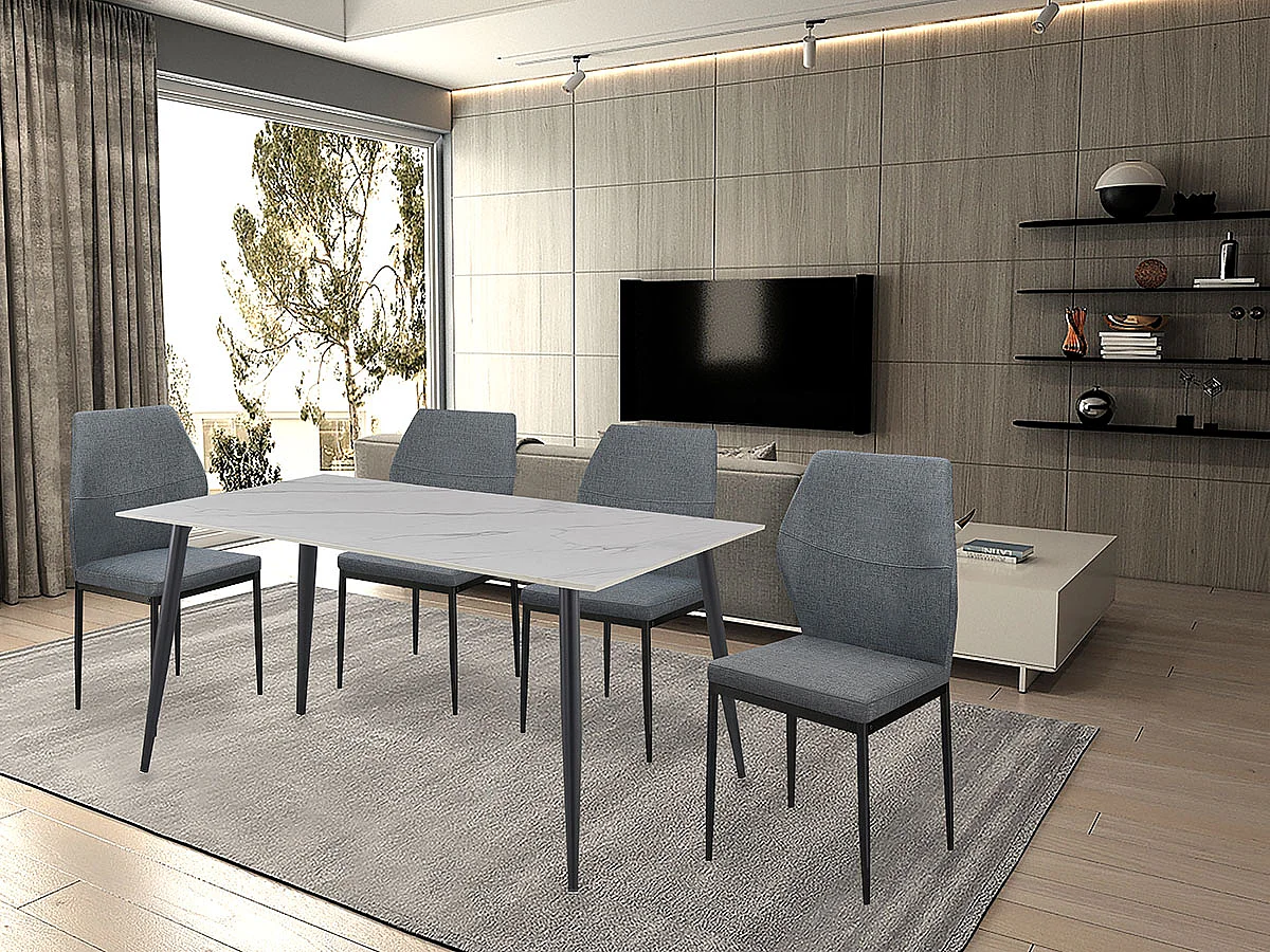 Conjunto de 4 cadeiras de jantar - tecido e metal - cinzento - AMINTAS