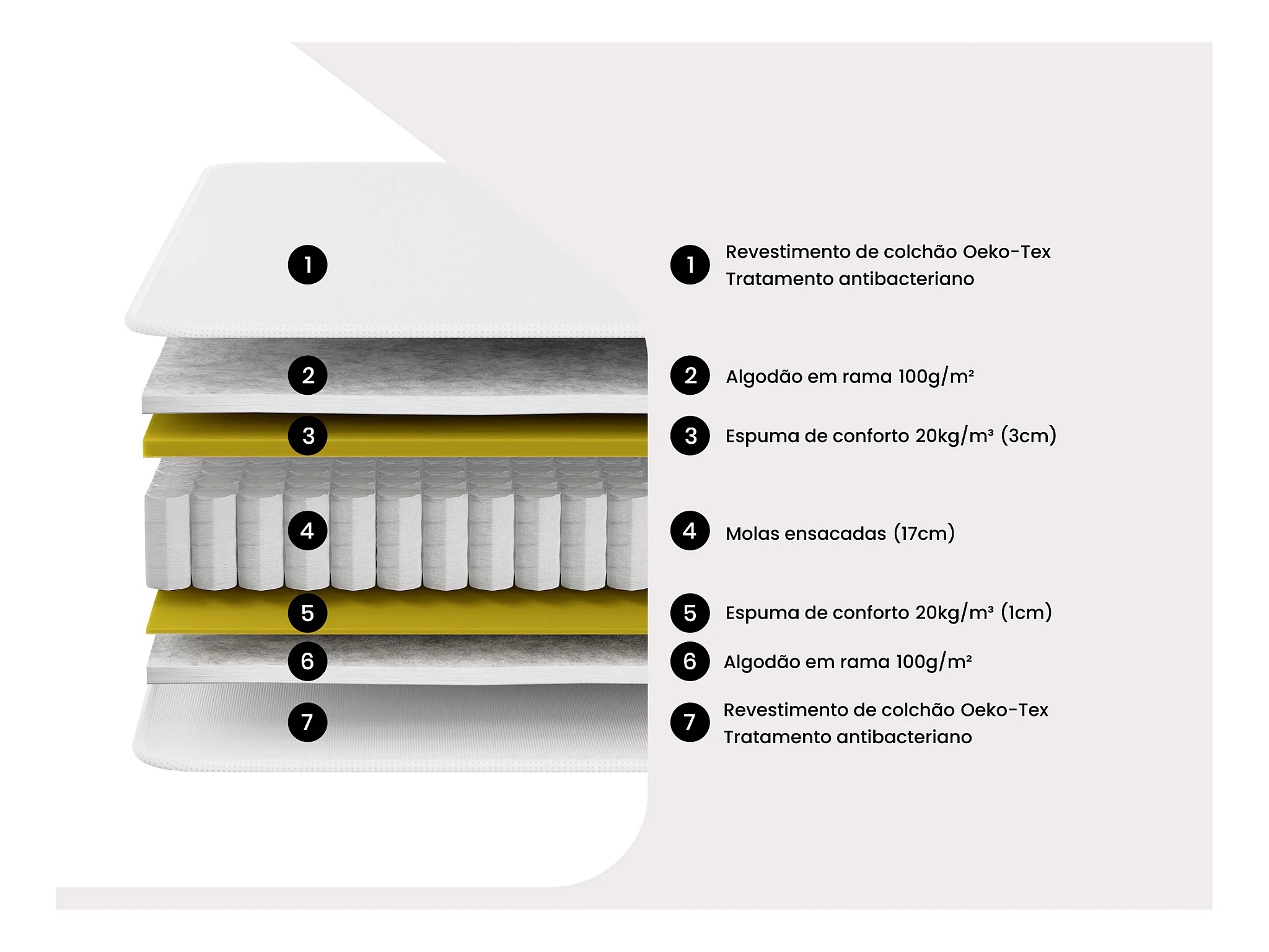 Conjunto 90 x 190 cm sommier com espaço de arrumação natural claro + colchão de molas ensacadas esp. 22 cm - PRESTIGE de YSMÉE