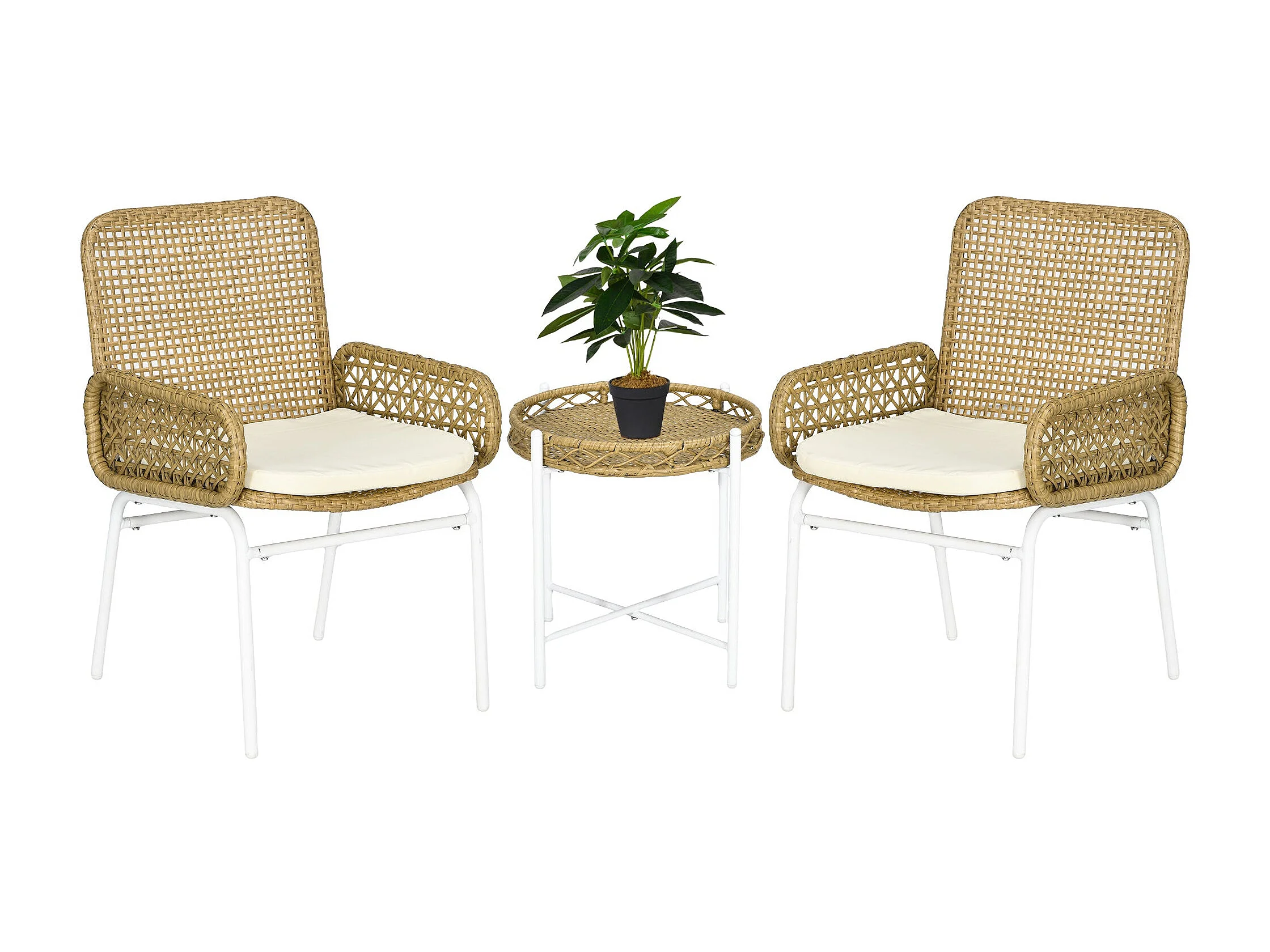 Conjunto de jantar de jardim móveis de exterior 3 peças resina tecida bege 02_0013684