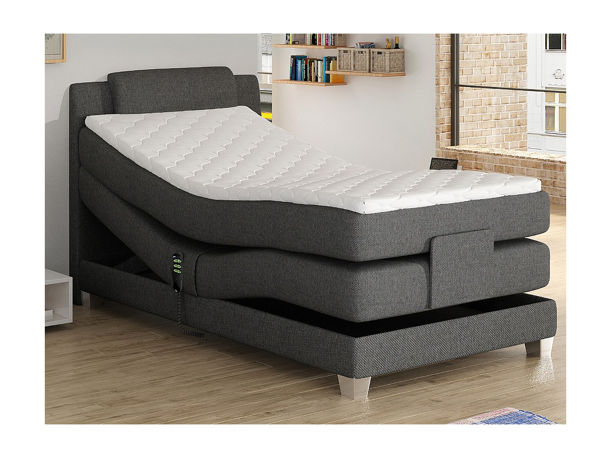 Conjunto boxspring cabeceira de cama + sommier de relaxamento elétrico + colchão + sobrecolchão CASTEL da PALACIO - 100x200 cm -Tecido cinzento claro