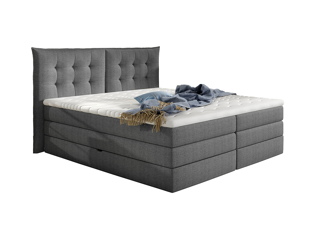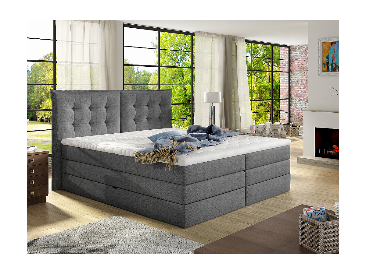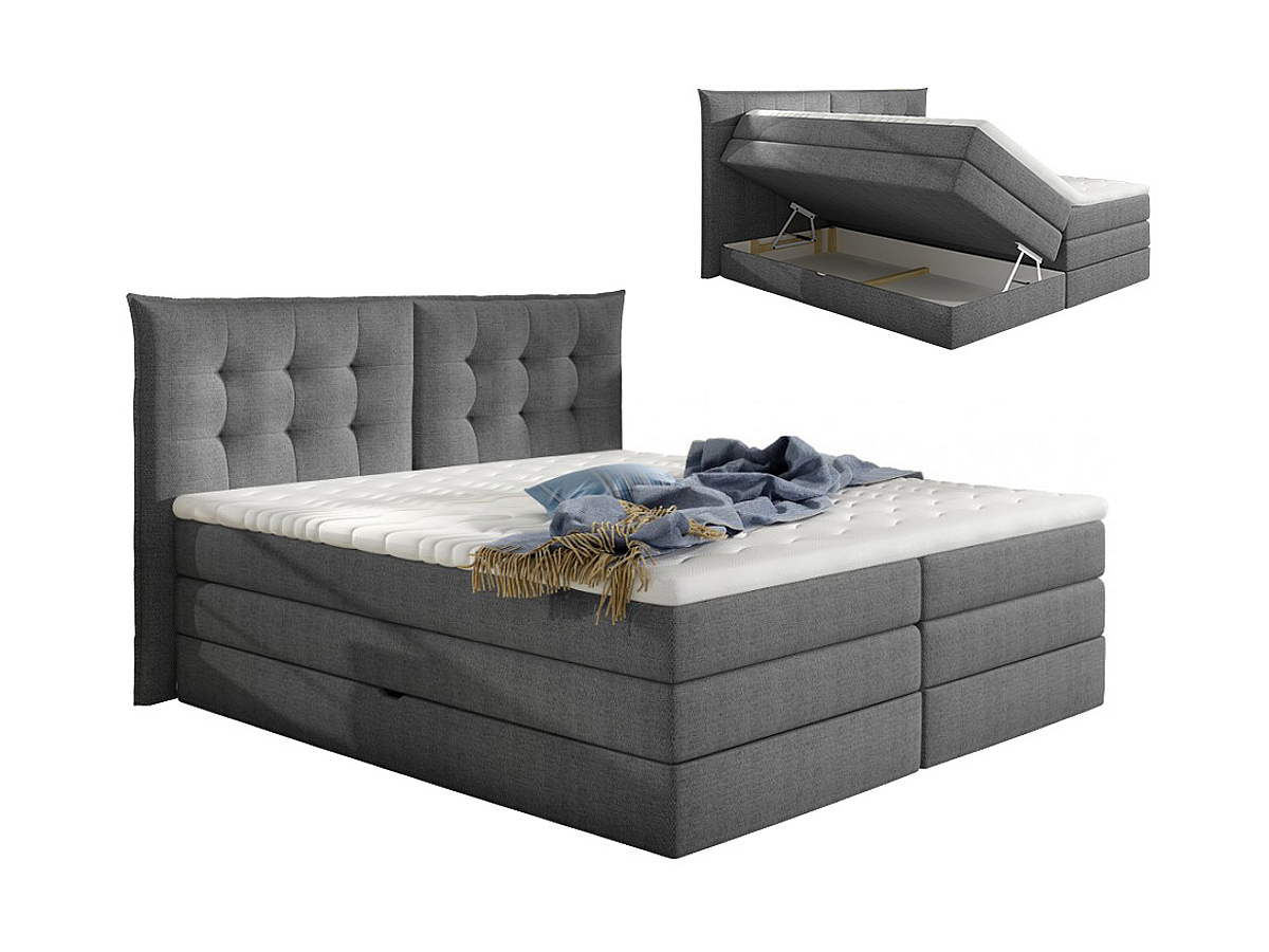 Conjunto boxspring cabeceira de cama + sommiers cofre + colchão + sobrecolchão PLAISIR de PALACIO - tecido cinza - 180x200 cm